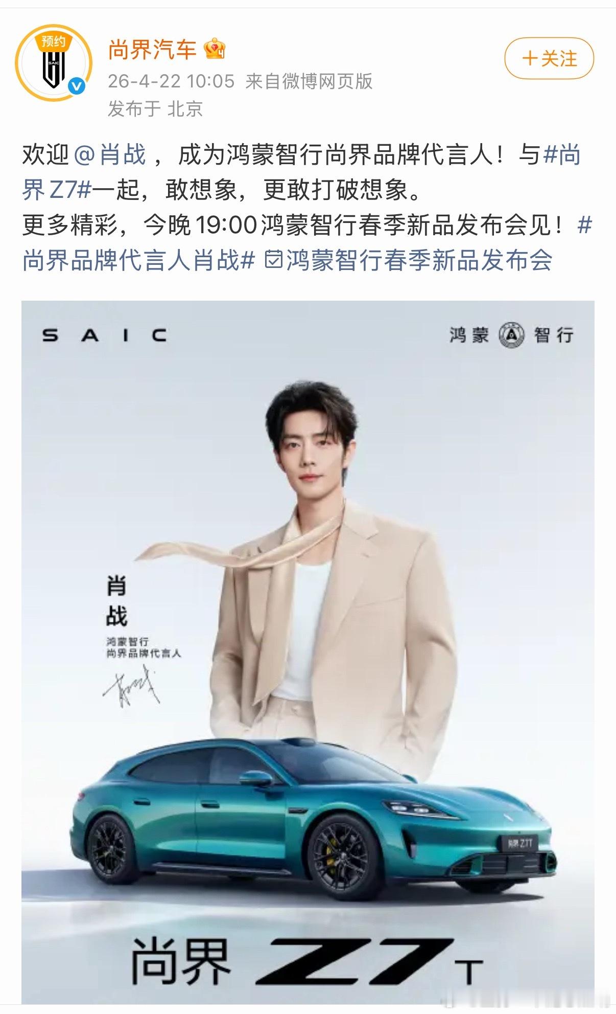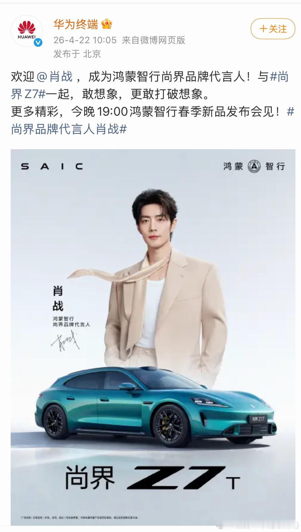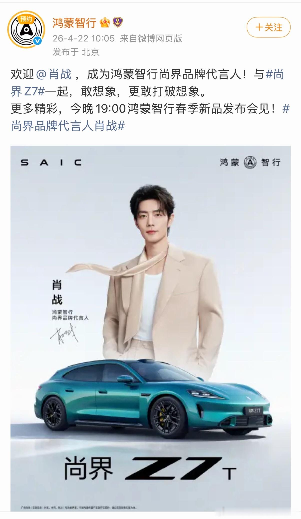 华为老总余承东先行官宣,尚界、鸿蒙、华为集体卡点肖战生日1005地广也早早上线,视帝排面!肖战粉丝晒单尚界肖战最新车代地广