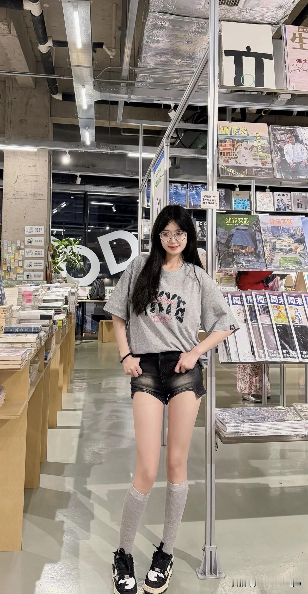 简约而不简单,确实是女神范儿的真谛,一条灰白牛仔裤搭配白色内T!时尚女性气质气