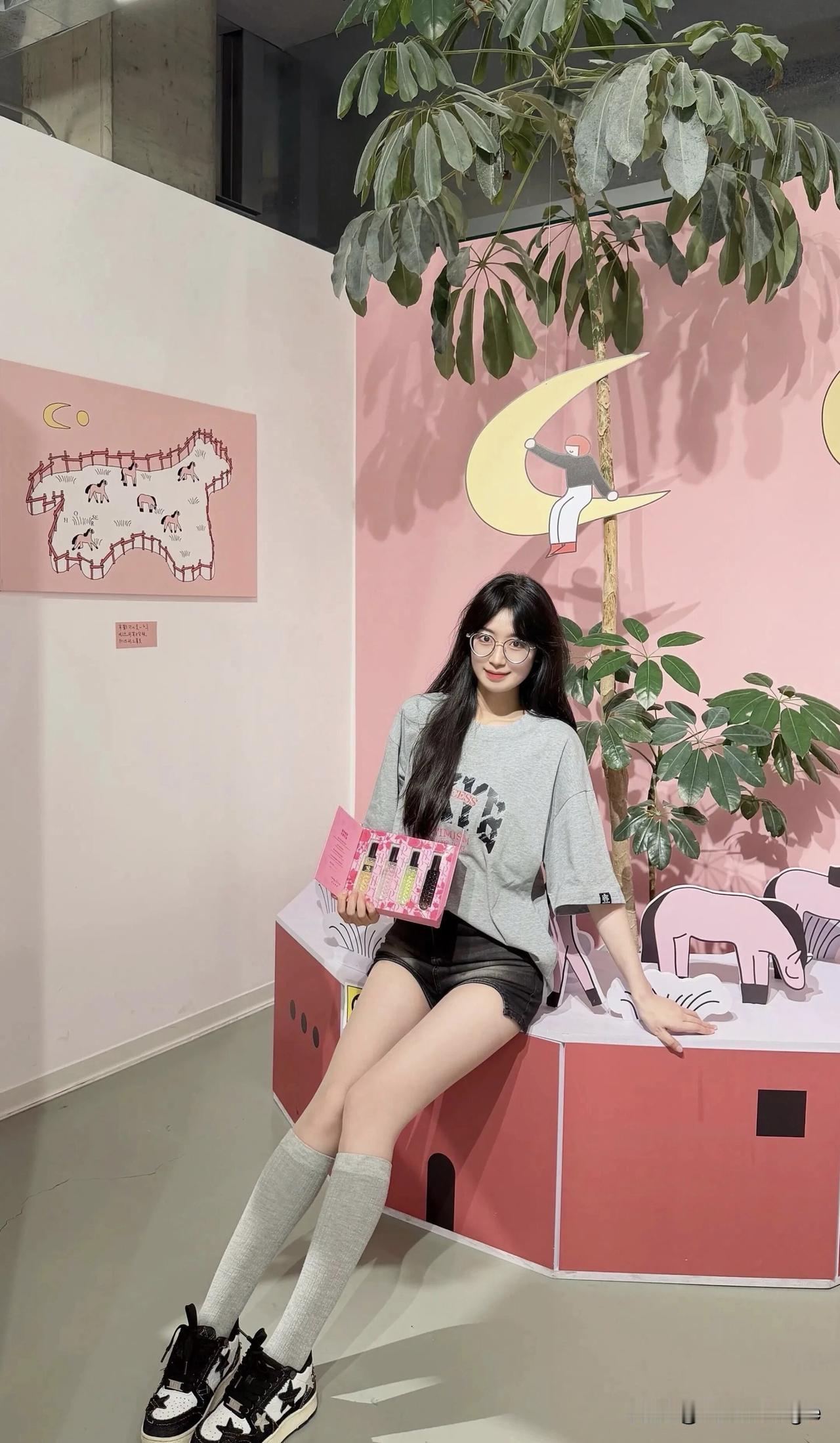 吴艳妮在成都穿着短裤大腿看起来很粗壮,表情自信又张扬