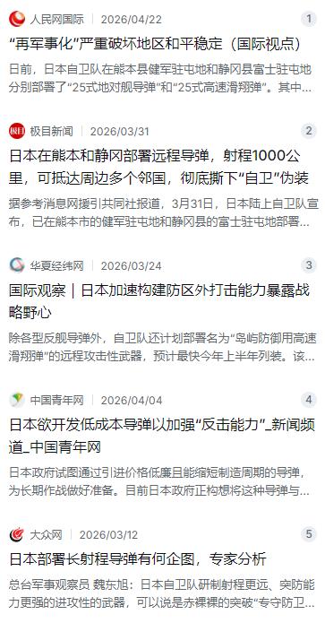 日本敢不敢打响第一枪?其实不少人已经看明白了:现在的日本不是在考虑,而是日本已经做好了所有的准备。 麻烦看官老爷们右上角点击一下“关注”,既方便您进行讨论和分享,又能给您带来不一样的参与感,感谢您的支持! 今年3月底,日本陆上自卫队干了一件大事,直接把远程导弹部署到了熊本县的健军驻屯地和静冈县的富士驻屯地。他们给这两款导弹起了个听起来很“防卫”的名字——“25式陆基反舰导弹”和“25式高速滑翔弹”。但明眼人都知道,这哪是什么防卫武器。拿“25式陆基反舰导弹”来说,射程超过1000公里,远超日本本土防御所需的范围。在军事常识里,射程达到1000公里的导弹,标准定义就是进攻性武器。日本NHK电视台自己也承认,这是日本第一次部署这种级别的导弹。而“25式高速滑翔弹”更厉害,基本型飞行速度达到5马赫,射程500到900公里,改进型据说速度能超过10马赫,射程突破3000公里。这种高超音速导弹的存在,根本就是为了在战争初期直接撕开对手的防空网。防卫省还计划让“宙斯盾”舰“鸟海”号搭载美制“战斧”巡航导弹,今年9月左右就会返回日本。自卫队还计划部署名为“岛屿防御用高速滑翔弹”的远程攻击性武器,预计最快今年上半年列装。这一套组合拳下来,日本的野心已经藏不住了。 更要命的是西南诸岛那边的布局。这些年日本花了上万亿日元,在从冲绳本岛到与那国岛这条岛链上疯狂搞军事化建设。最值得关注的是与那国岛,这个岛距离台湾只有110公里,距离钓鱼岛150公里。日本防卫大臣小泉进次郎明确表示,要在与那国岛部署03式中程防空导弹,预计2026年3月完成部署。而且日本已经依托西南诸岛搞了三套针对台海方向的夺岛作战方案。第一套是用扩编到3000人的“水陆机动团”搞闪击战,配合“大隅”级运输舰、“日向”级直升机母舰和“出云”级轻型航母快速投送兵力。第二套是陆上自卫队主导的大规模两栖作战,计划组建“海上运输群”和特种作战旅。第三套是用远程导弹和高速滑翔弹实施火力压制。这三套方案摆出来,谁还相信日本只是为了“防卫”? 别以为这些动作只是军事层面的试探,日本在政治上也在同步推进。2026年4月12日,日本首相高市早苗在自民党大会上公开宣称“修宪时机已经到来”。这次修宪的核心内容有两个:一是把自卫队正式写入宪法,从法理上确立其正规军事力量的地位,说白了就是要让自卫队变成名正言顺的“军队”;二是扩大政府在紧急状态下的权限,为战时动员铺路。自民党已经准备在国会参众两院设立宪法条文起草委员会,目标是2027年党大会前确定修宪程序。这相当于要给自卫队的进攻属性盖个合法的章。 说到这儿,有人可能会问,日本背后是不是还有美国撑腰?没错,但问题在于,现在的日美军事同盟已经不是简单的美国保护日本了,而是两国在联手搞事情。2026年3月,高市早苗访问白宫跟特朗普会谈,重点议题之一就是日本要参与美国的“金穹”新一代导弹防御计划。日美双方要共同开发拦截导弹、建设卫星网络,针对的就是中俄的高超音速武器。与此同时,日美还在推进共同开发滑翔阶段拦截器,目标是在2030年代完成。更关键的是,日本已经逐步在摆脱对美国核保护伞的依赖,自己开始动核武器的脑筋了。日本政府计划在2026年底前修订“安保三文件”,推动修改“无核三原则”,删除其中“不运进核武器”的条款。高市早苗政府还在谋求通过新的战略文件,推动修改“无核三原则”,删除其中不运进核武器的条款,为美军的核武器重新入驻日本扫清障碍。这虽然还不是立刻拥核,但明显是在为核武器进入日本铺路。 为了给这一切找借口,日本在舆论上也没闲着。2025年版的《防卫白皮书》直接称中国为“前所未有的最大战略挑战”。更夸张的是,据《朝日新闻》调查披露,日本竟然存在一条利用AI批量生产反华视频的产业链。有人在网络平台发布任务,要求制作“贬低中国、赞美日本”的短视频,几分钟就能生成一条极具煽动性的抹黑视频。有学者直接指出,这种操作手法跟二战前日本社会的舆论操控有着令人不安的历史相似性。当年日本军部通过编造“中国排日”“满洲危机”等虚假叙事煽动战争狂热,如今只不过是把报纸广播换成了AI视频。日本媒体对华报道也呈现严重的“一边倒”,涉华新闻几乎全是负面报道,关于中国发展成就的客观报道几乎没有。当日本民众每天在新闻上看到的都是一个“危险、落后且充满攻击性”的邻国,敌意自然会生根发芽。