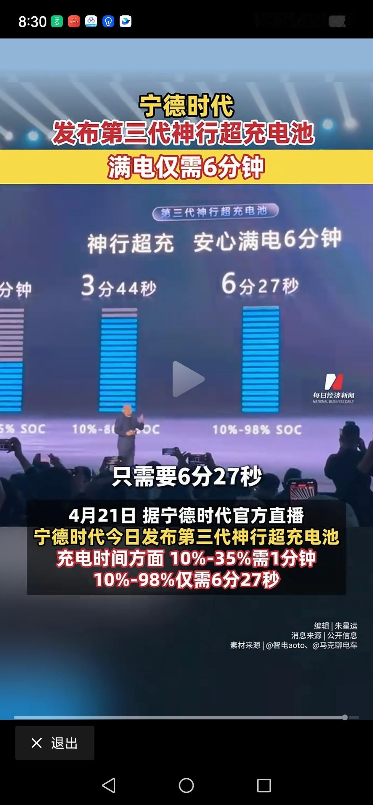 昨天宁德发布了新的电池,那对比亚迪超充,谁更胜一筹? 4月21日宁德时代发布麒麟凝聚态电池,其主要参数为: ✅ 续航1500km,京沪直达不用充电 ✅ 能量密度350Wh/kg,重不到650kg ✅ 凝聚态电解质彻底解决安全问题 对比比亚迪神行超充电池: 🔹 比亚迪胜:充电10分钟补能400km,磷酸铁锂成本更低 🔹 宁德胜:续航是比亚迪的2-3倍,能量密度高出70%,重量轻400kg 路线之争:一个拼速度,一个拼续航,你站谁?评论区聊聊!