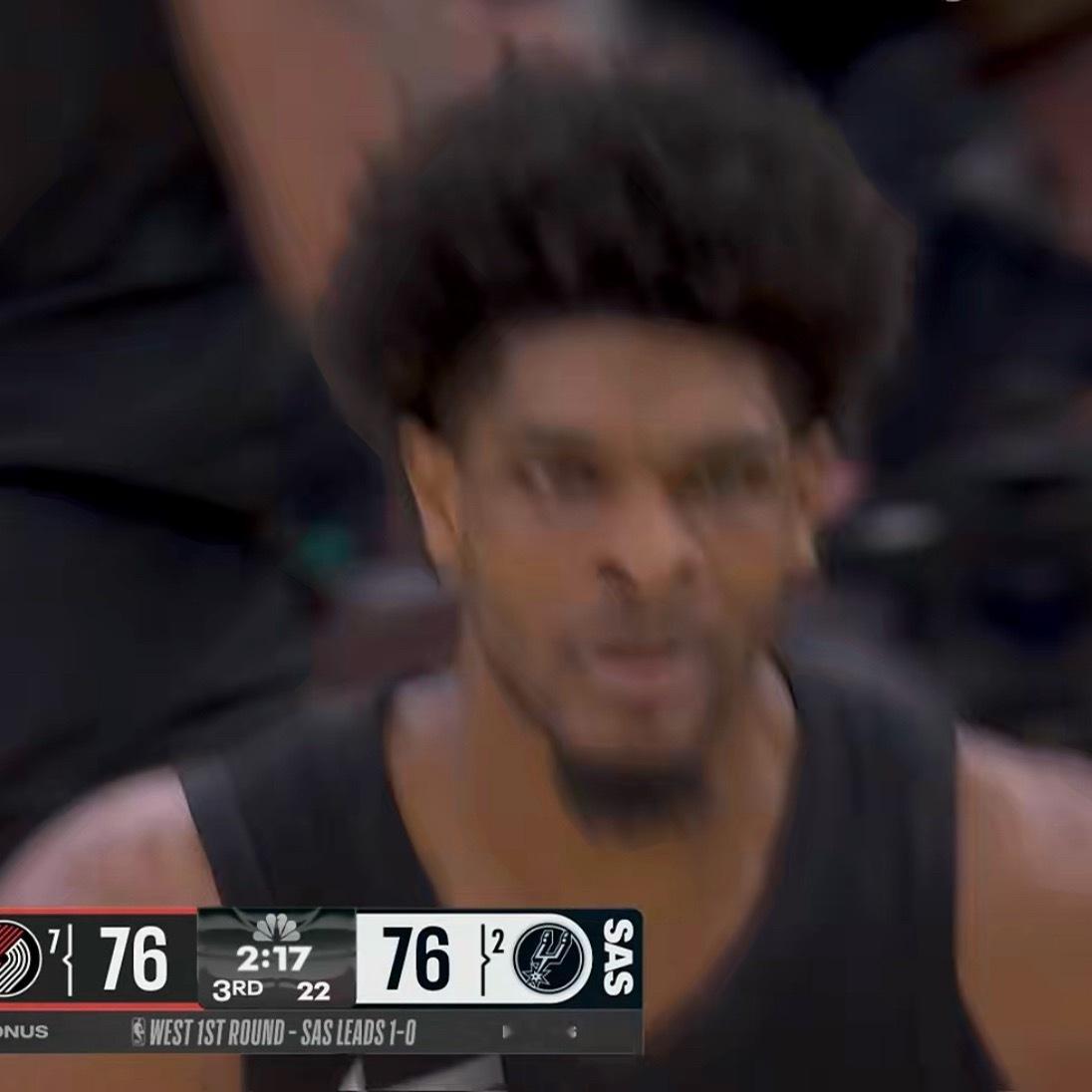 在文班伤退后,开拓者体型优势出来了,至少今天给外线压力做得不错,马刺全队三分只有24中7。