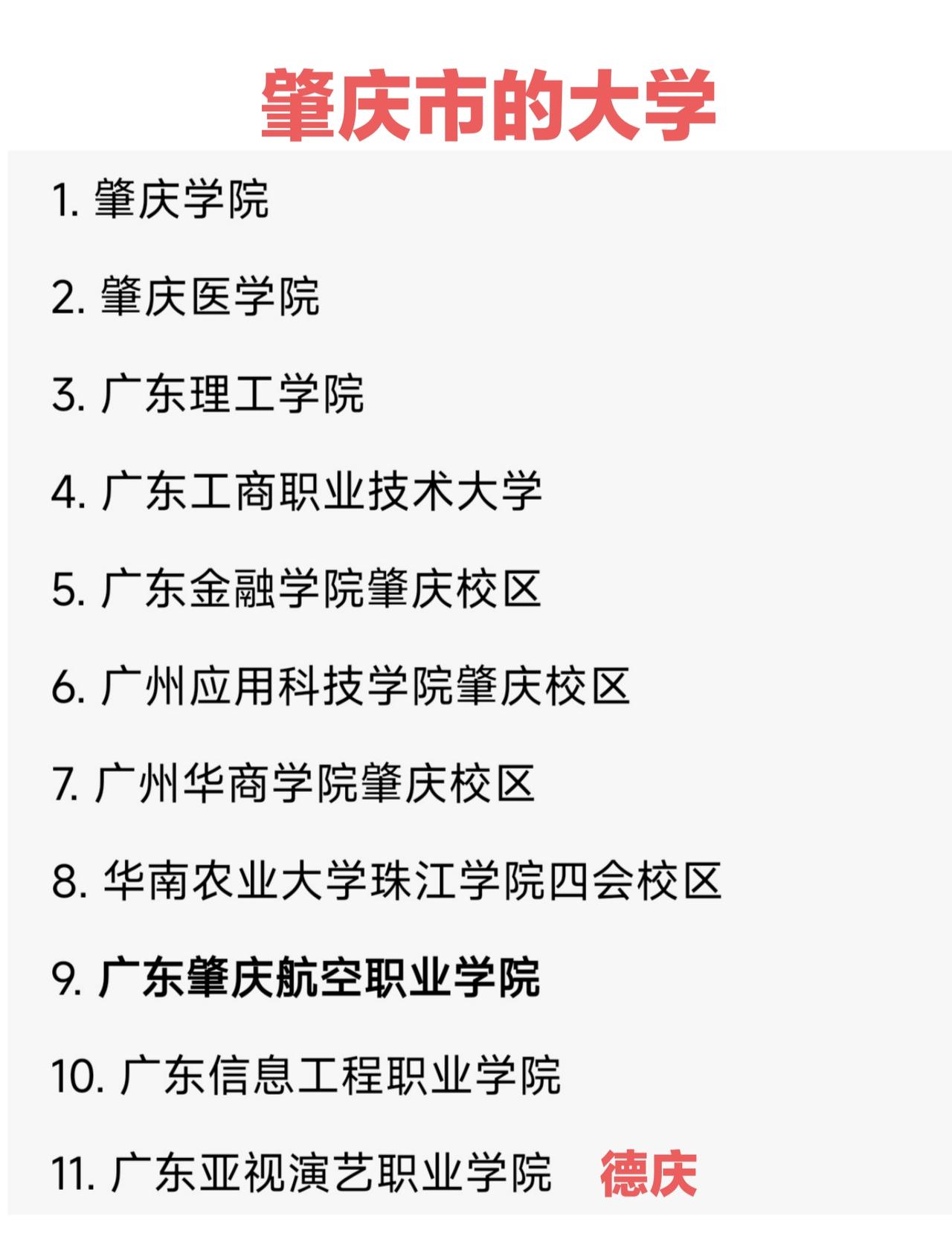 肇庆市大学众多,一共有11所大学,不过大部分都位于发达的端州、鼎湖、四会、高要,山区四县只有德庆有一所广东亚视演艺职业学院。 如果怀集、广宁、封开也有大学,那就完美了。一所大学对一个城市的发展是很有必要的,德庆因为有大学现在城市发展非常不错。
