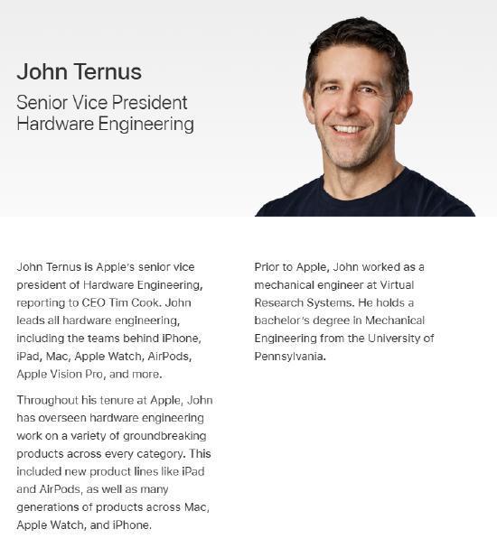 科技佳ZHJ苹果官宣换CEO了:50岁的硬件工程老将约翰·特努斯,将于9月1日接替库克出任CEO。特努斯2001年加入苹果,主导过iPhone、Mac等核心产品的硬件工程,还牵头了Mac转向自研芯片的关键过渡,2021年升为硬件工程高级副总裁。还是期待一下新官上任能给苹果带来怎样的变化——苹果新任CEO特努斯是谁科技先锋官苹果
