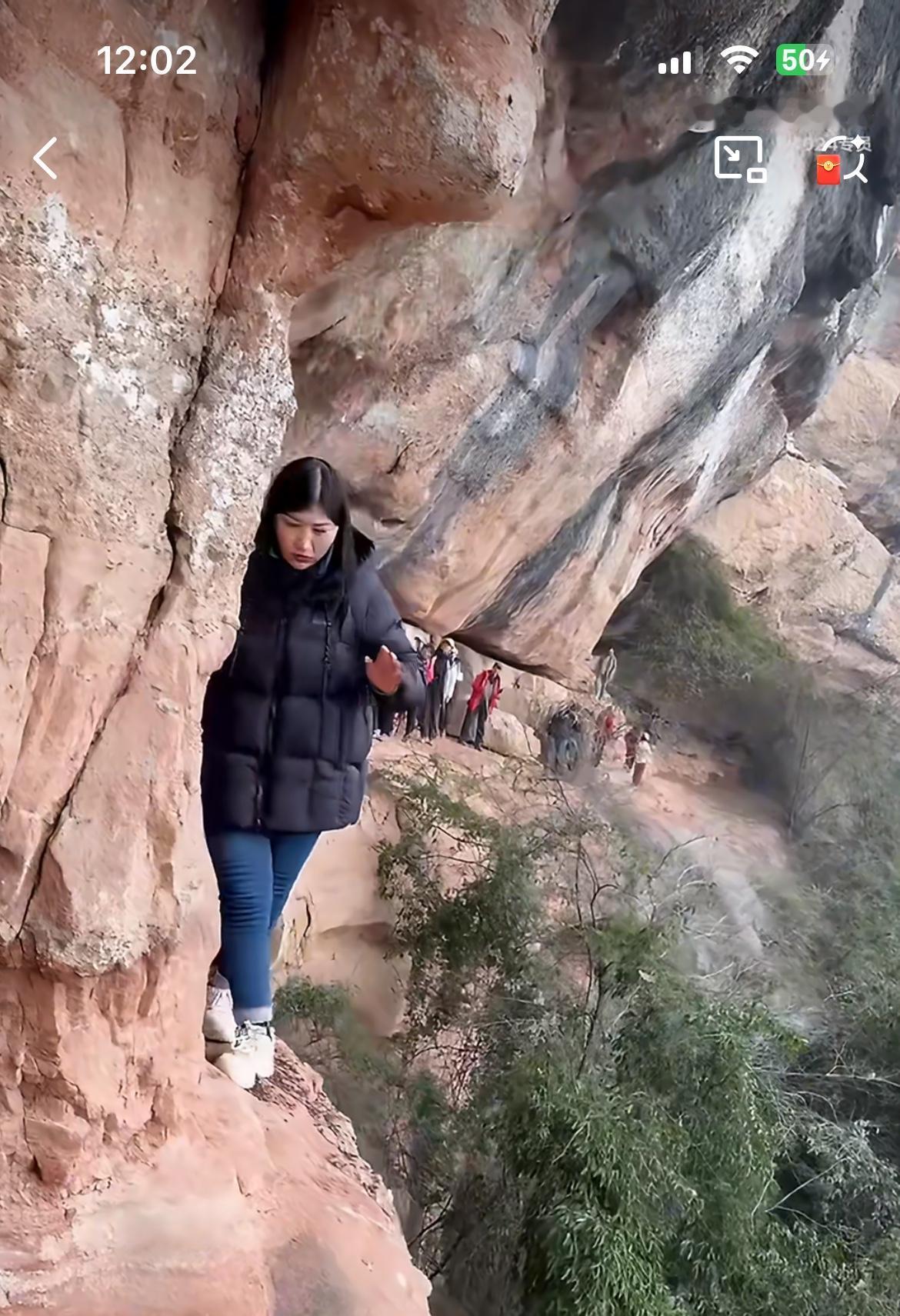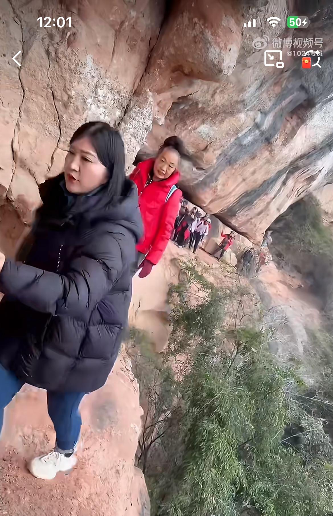 一群游客打卡四川泸州鼓楼绝壁栈道,这条窄路没有任何的防护,下面就是深达几十米的悬崖。看着这一群没有任何登山经验的男女,穿着平常的增高鞋,旅游鞋在徒步这条绝壁,真的是替他们捏一把汗。在户外活动不是说不能冒险,但是也要做好最基本的装备准备,还有体力上的储备,而不是凭着一腔的热血,和群体氛围的感染,被架着上了这座悬崖绝壁小路。上去之后,碍于面子,又不敢退,就只能硬着头皮往前进。看着仅能容下一只脚宽度的绝壁,艰难前行的男女,真不知道该说什么好。平时坐个公交地铁都要装林黛玉的一群人,此时却如此莫名的勇敢。这要是真出事了景区会脱掉干系吗?他们的家属会善罢甘休吗?