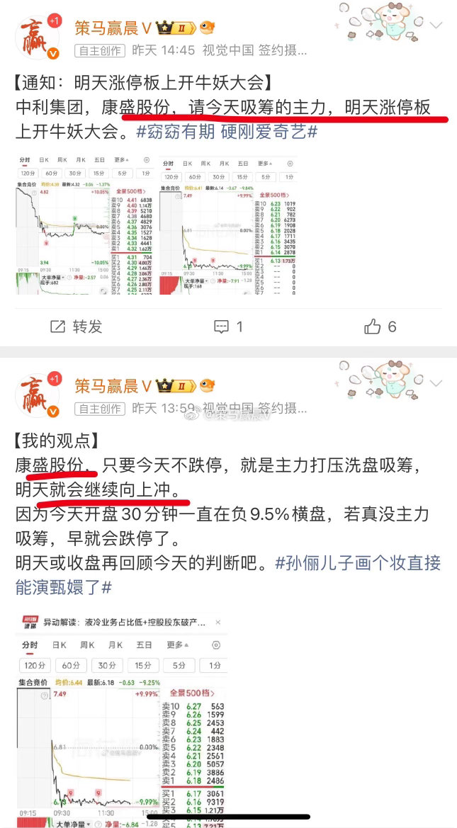 昨天说:康盛股份,只要今天不跌停,就是主力打压洗盘吸筹,明天就会继续向上冲。