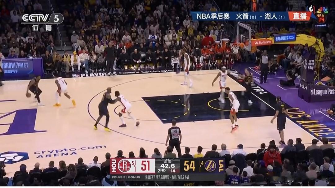 NBA季后赛(第2场)半场湖人领先3分。 4月22日上午,NBA季后赛(第二场)湖人队(1)主场迎战火箭队(0)比赛。上半场第1节中局火箭14-12,斯马特3分申京上篮20-17,詹姆斯中投杜兰特罚球22-21,杜兰特中投肯纳德3分26-24,肯纳德3分海斯罚球30-26,詹姆斯罚球33-26,结束第1节湖人领先7分。第27节开局詹姆斯连续3分39-29,申京上篮八村塁3分肯纳德上篮44-31,斯马特号3分49-34,火箭1号罚球申京上篮38-49,杜兰特连续中投伊森3分杜兰特罚球八村塁底角3分48-52,詹姆斯罚球杜兰特连续罚球54-51,结束上半场主场作战的湖人领先3分。休斯顿火箭 nba季後赛