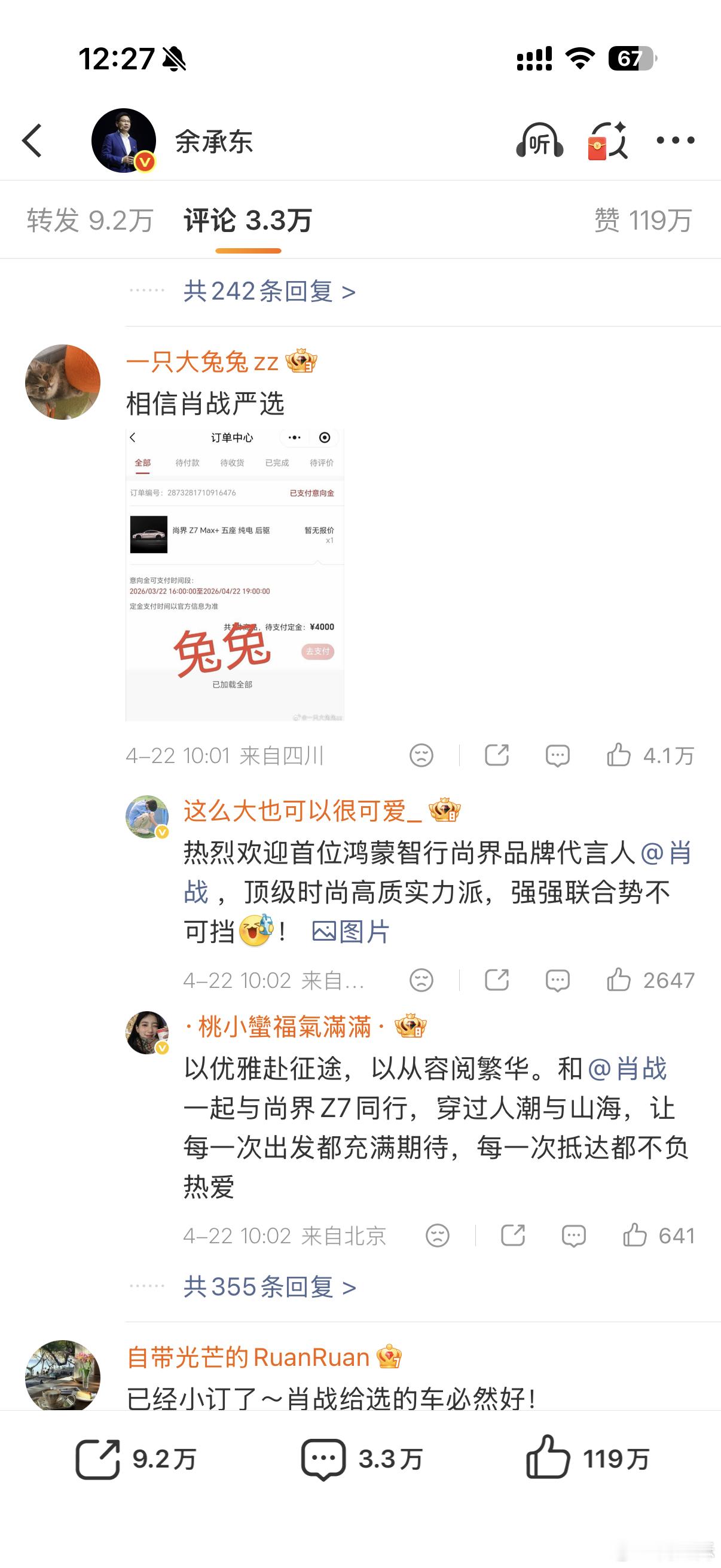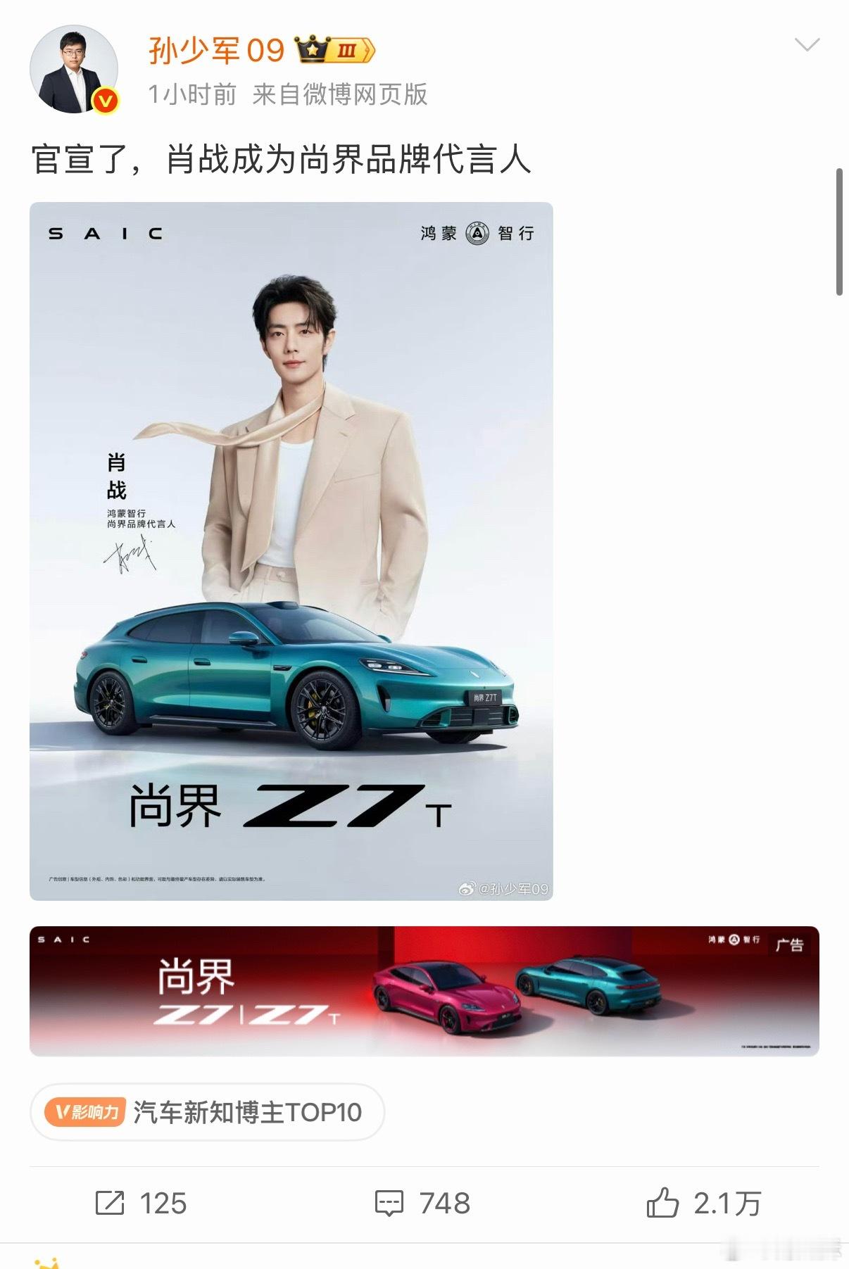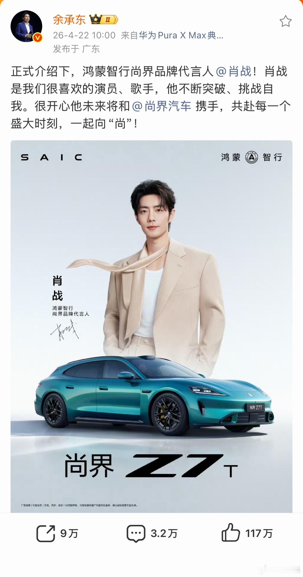 余总官宣肖战代言的微博,直接干到 117 万点赞了。。孙少军这条都2.1万点赞。。
