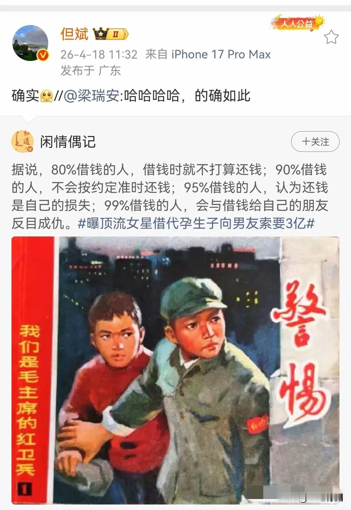 全网有友友借钱给别人是按时还钱给你的?能不能分享一下被别人还钱的快乐喜悦? 因为听到的,看到的,基本都是负面的信息。借钱没按时还的,借钱怎么也不还的,借钱消失了的,借钱不承认的,还有就是借钱反目成仇的,走上法庭的都有。 但总的“确实”两个字,绝对有故事,只是不好意思说[捂脸] 大家有关于借钱的经历和故事吗?欢迎分享让友友们少走弯路[比心][比心]