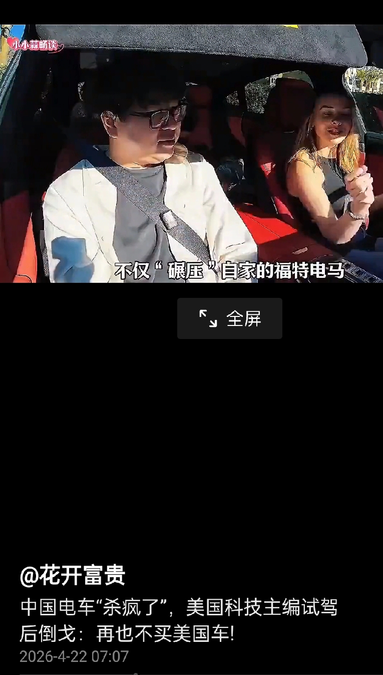 以前海外博主聊车,不是BBA就是特斯拉,根本没人搭理中国品牌,现在倒好,只要标题带个“中国电车”,播放量蹭蹭往上涨,评论区全是老外蹲细节的:“这个车多少钱?我们这边有没有卖?”“这内饰配置,放在我们这得卖双倍价吧?” 为啥这么火?还不是反差感拉满了!以前老外觉得中国车就是廉价山寨货,现在一看,十几万的车有冰箱彩电大沙发,还有高阶智驾,充电10分钟能跑几百公里,比他们本土卖的那些配置寒酸还死贵的电车强太多了,能不好奇吗? 说白了这就是实力说话,以前我们追着看外国车评测,现在轮到老外追着看中国车的新鲜事儿,这感觉,真爽!