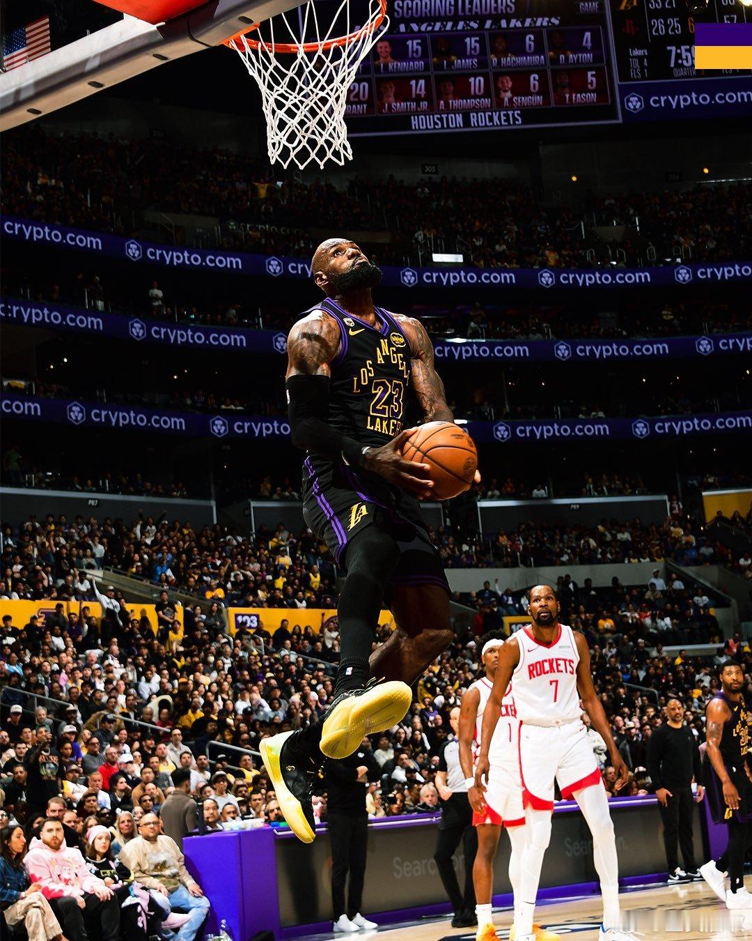 詹姆斯28分8板7助、斯玛特25分2板7助5断、肯纳德23分6板2助3断、八村塁13分5板2助、艾顿6分5板1助、海斯6分4板1助2帽、范德比尔特5板1助、拉拉维亚2板 41岁詹姆斯折叠背扣火箭vs湖人