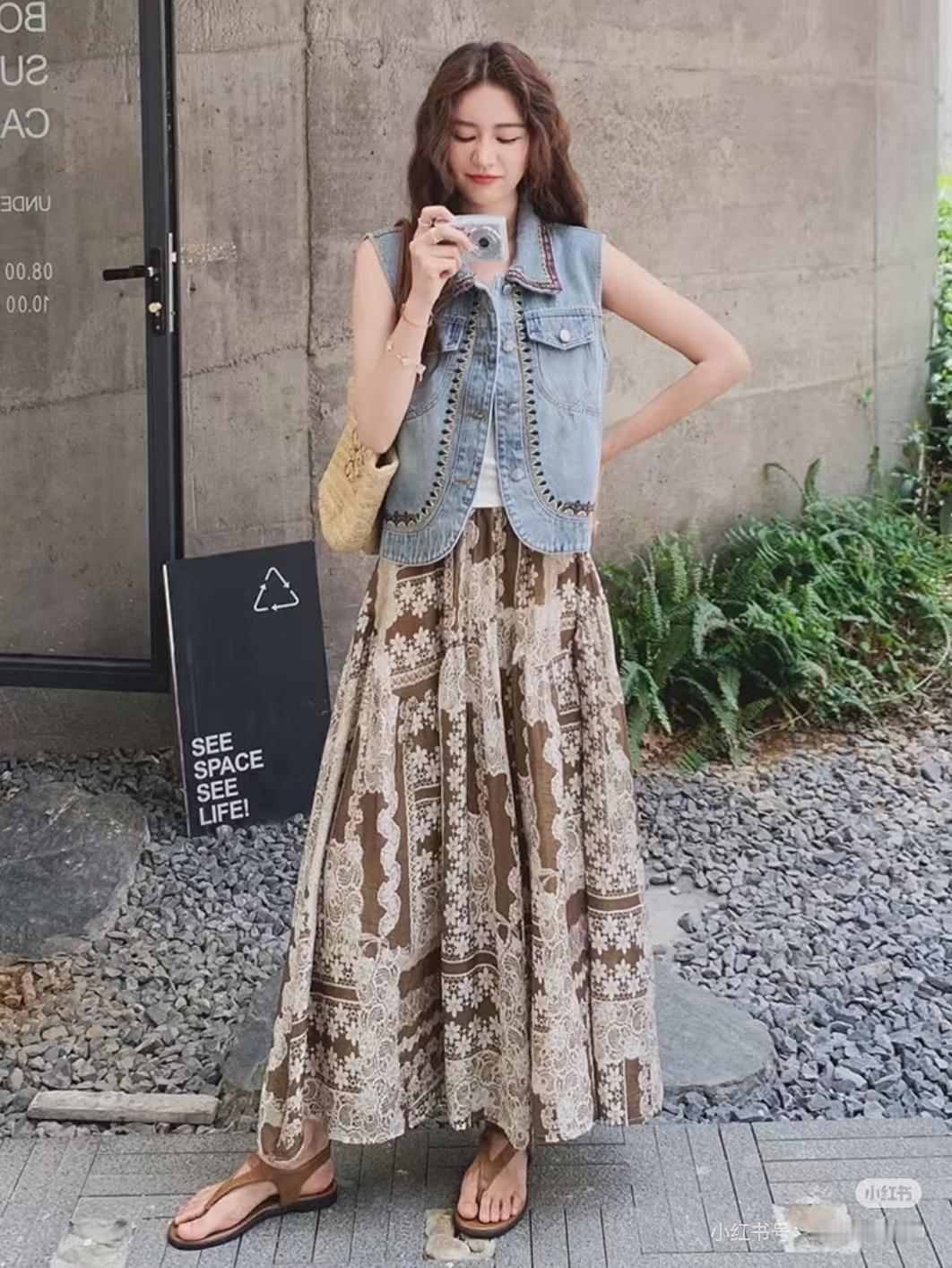 牛仔马甲套装氛围感穿搭|拍照📸巨出片~