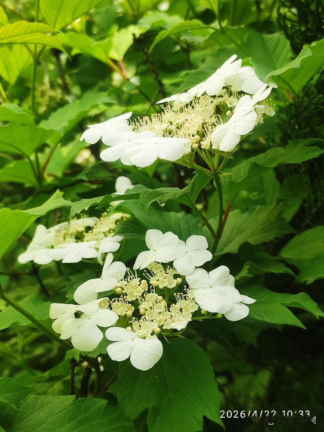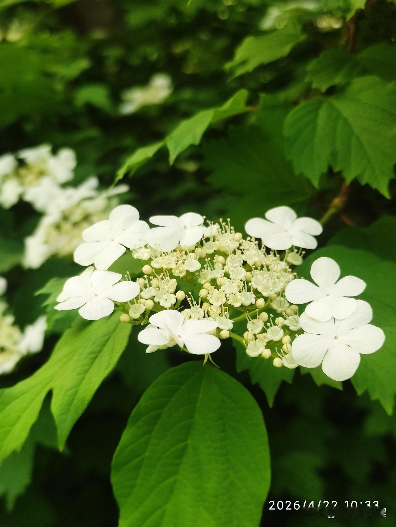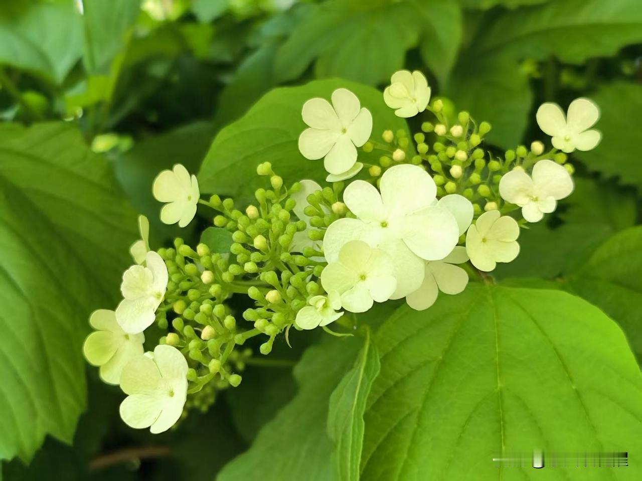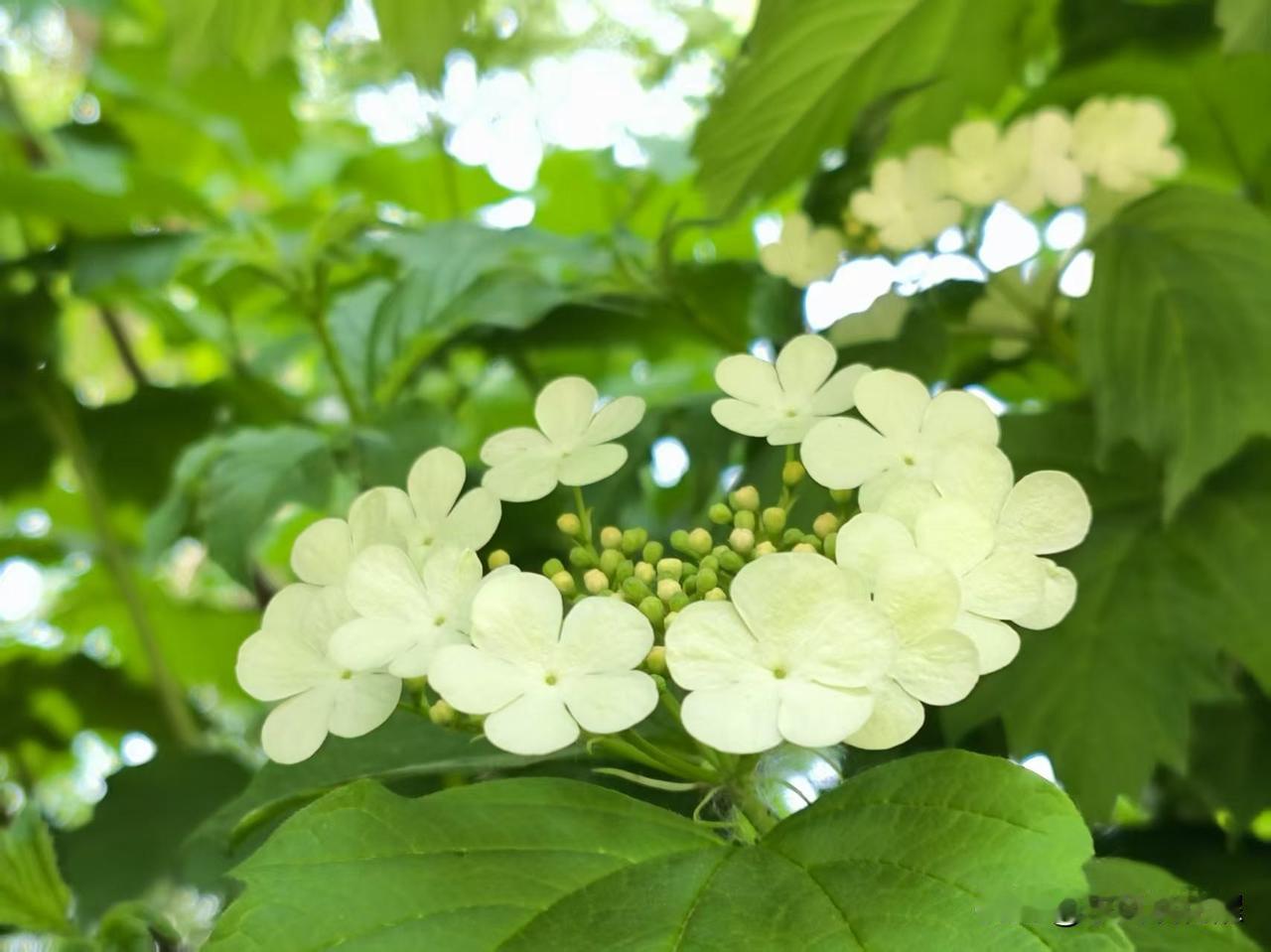 人间四月琼花开,素白胜雪,清雅如诗。 公园里的琼花开了,花朵还没开大时看着是浅绿色,开大了就变成白色了。一枝多花,花朵是伞状簇拥着七八朵围成一圈,清雅脱俗,素洁清新,自带一股超然尘外的清冷气韵,着实惹人喜爱。 晒图笔记大赛 琼花春天 琼花胜境 分享最美花朵