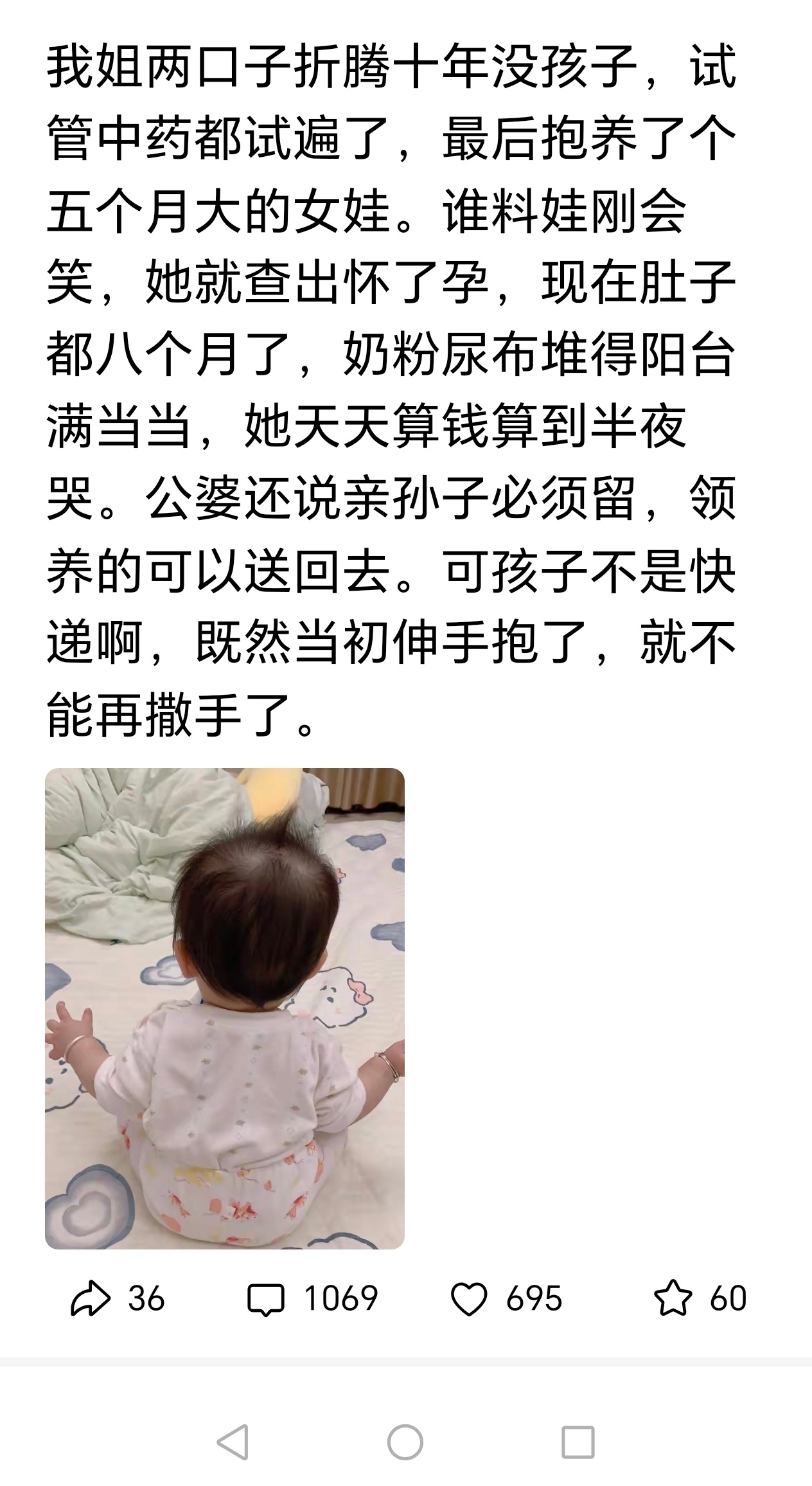 相信玄学,如果没有抱养她也可能怀不上孩子。这个女孩就是家里的福星,好好珍惜吧!