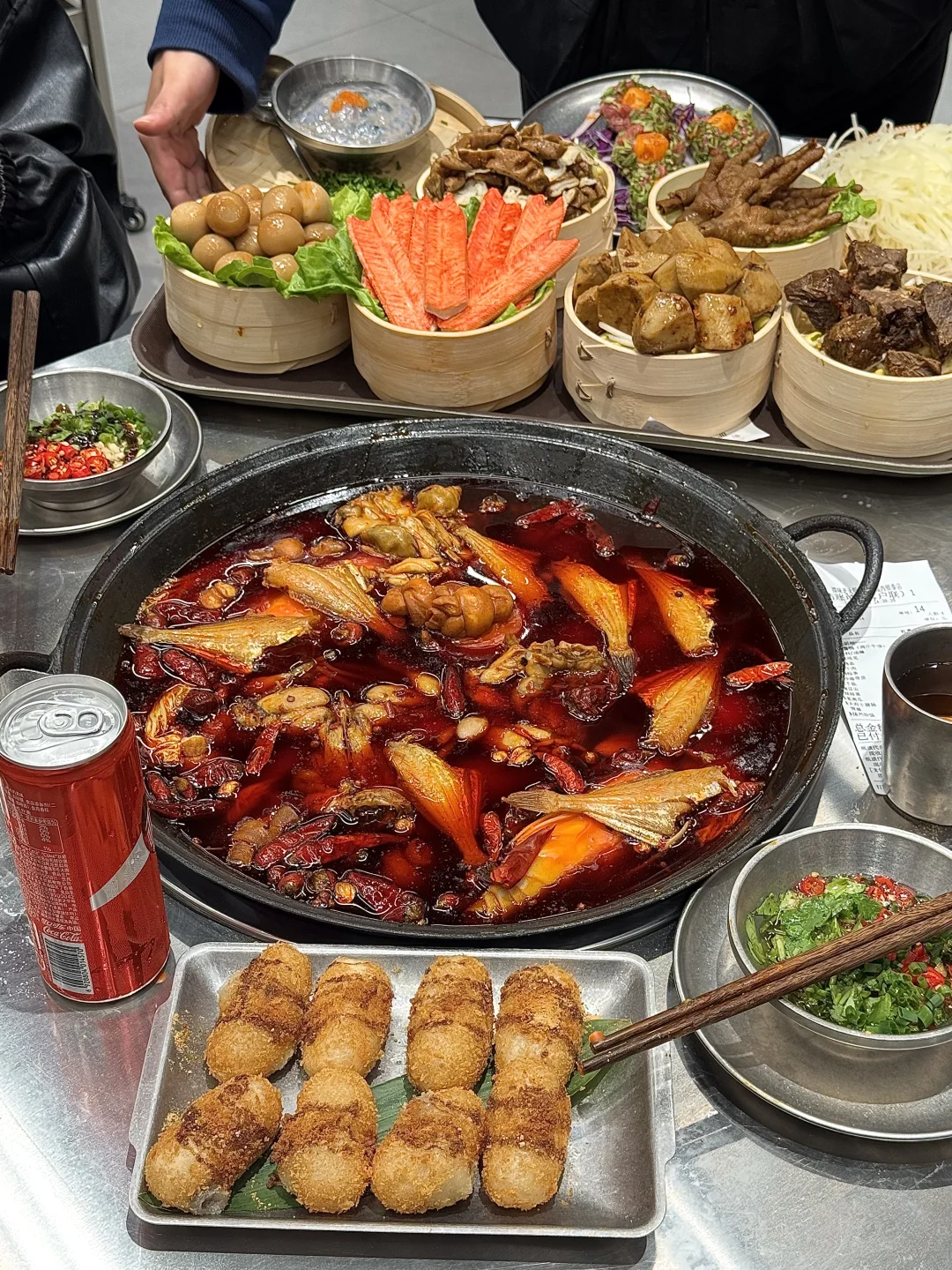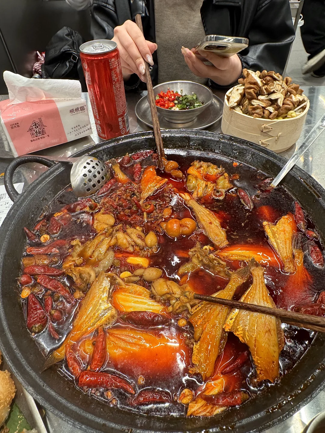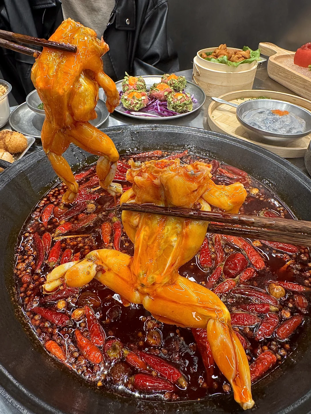特意坐了20站地铁去吃的!!真的好吃😭 耗儿鱼肥肠蛙!!老油锅底真的好香!麻麻辣辣巨入味!蛙蛙个头很大 新鲜又q弹,我们还加了咸蛋黄贡菜牛肉丸、黑豆花…嘎嘎好吃! 饭点坐满了附近居民 还吃到了重庆拉丝凉糕!好地道价格也很亲民!一定要试试!叫:捍卫不改良)