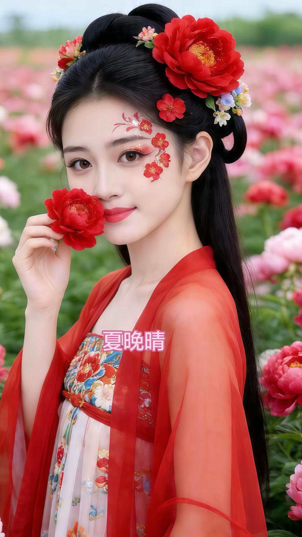 AI牡丹佳人照 随变ai随便玩 汉服与牡丹 古风汉服美如画 大唐美人