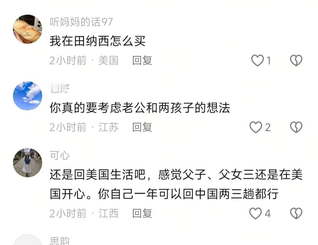 你发现了吗? 安娴虽然颜值比不上那些网红大美女,但她对两边父母的孝心真的跟一般人不一样! 不信你来看看她这一年来回奔波的行程! 谁懂啊!我最近刷安娴的视频真的刷到郁闷!本来以为是跨国远嫁的神仙家庭,结果一年之内中美来回窜,我和小伙伴都惊呆了,这折腾来折腾去,大人孩子都遭罪,到底图个啥啊? 说真的,我本来以为安娴这次回河南是彻底定下来了,毕竟当初说妈妈身体不好,要回来陪爸妈不留遗憾,谁知道还没待满一年,又麻溜带着一家四口回美国了,坦白说,我看着都觉得崩溃,这跨国飞一趟多折腾啊,更别说俩孩子还要来回换环境适应。 我之前有个远嫁的闺蜜,本来想从广东回四川定居陪爸妈,结果刚回去半年,老公孩子连方言都听不懂,上学也不适应,最后又灰溜溜回去了,真的,这种两边拉扯的滋味,谁过谁知道。 然后这次回美国才爆出来,山姆妈妈刚动完手术,行动都不方便了,山姆看着心疼得不行,不是吧?之前视频里完全没提过这茬啊。安娴也松口说,后续回不回河南,全看俩孩子的想法,随便他们选,留在美国上学也可以。 别人说的,凡事都讲个缘起,有因才有果,你不能既要又要,这话真的太戳人了。你想陪娘家爸妈,又想顾婆家的状况,还想孩子不遭罪,哪有这么完美的事?网友吵来吵去,有人说她卖了美国房子太冲动,有人说人家的日子关你屁事,老实讲,我看着都觉得没意思。 总之,我想说的是,过日子首先得把自己的小家庭捋顺,再谈两边的陪伴,别两头跑最后两头都没顾上,你说对不对?