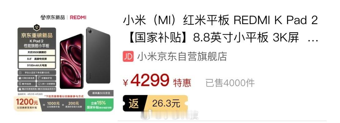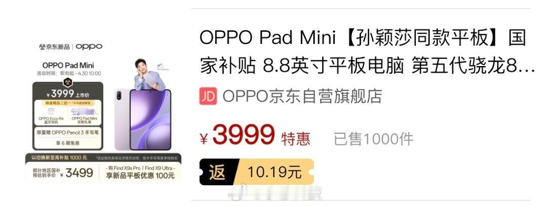 红米K Pad2:4000+OPPOPad mini,1000+