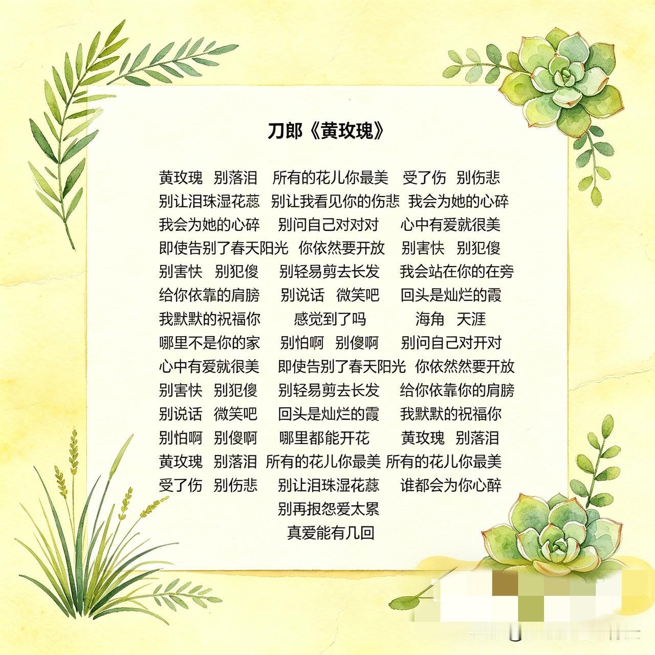 刀郎先生的那首《黄玫瑰》真的是一首很温暖很治愈的歌曲。 其中那句“别害怕,别犯傻,别轻易剪去长发。我会站在你的身旁,给你依靠的肩膀”。给了许多迷茫焦虑的灵魂深深的抚慰。 有人说这是一位父亲写给女儿的语重心长的教导,有人说这是他写给朋友鼓励的话,无论如何,这首歌给了我们坚守下去的信念和力量。