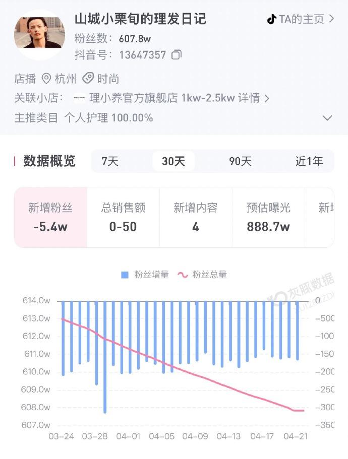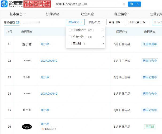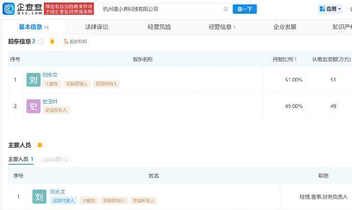 【山城小栗旬网店30天销售额破千万】山城小栗旬近30天掉粉5.4万近日,网红山城小栗旬老婆陈大榕在直播中透露,自己被前男友骗了上千万,导致重度抑郁暴瘦80多斤相关话题,山城小栗旬老婆被前任骗钱后瘦80多斤登上热搜引发关注。 企查查APP显示,山城小栗旬(刘宇)名下现关联5家公司,其中2家存续,分别为巴南区文刀刘美发店、重庆陆之渔文化传媒有限公司,其余3家企业均已注销,包括江北区二刀刘男士理发馆、渝中区二刀刘理发店、沙坪坝区二刀刘美发店。 第三方数据显示,山城小栗旬短视频账号粉丝超607万,近30天掉粉5.4万,其关联网店为“理小养”,近30天直播销售额超1000万。据企查查信息,杭州理小养科技有限公司成立于2025年10月,法定代表人为刘永文,注册资本为100万元,经营范围包含化妆品零售、化妆品批发、互联网销售等,由刘永文、史玉叶共同持股。该公司已申请注册多枚“理小养”、“理小样”、“狸小养”商标,商标状态多为注册申请中。