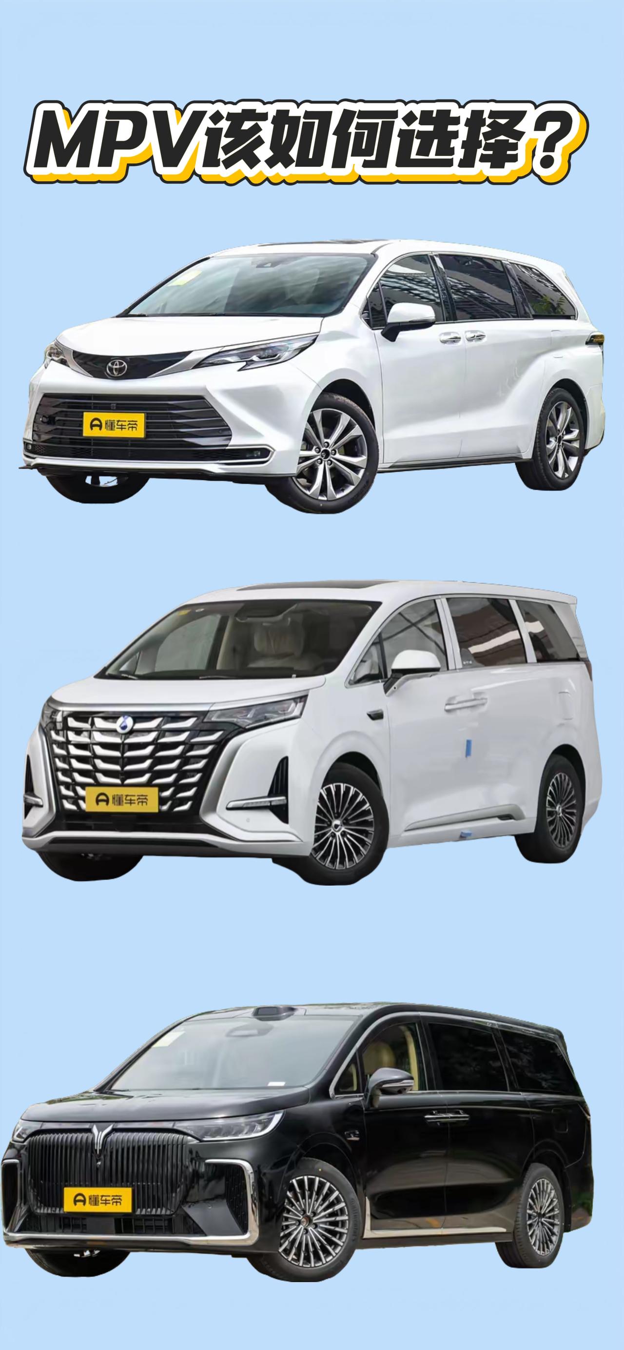 丰田赛那、腾势D9、岚图梦想家三款MPV怎么选? 先从价格入手:丰田赛那门槛最低(焕新价约27万起),梦想家中等(30.99万起),腾势D9最贵(38.98万起); 实用场景:塞纳作为家用比较合适,它有大空间的表现,但是整体的配置以及用料确实不及其他两台车型,但是好在皮实耐用;腾势D9偏商务,内饰豪华感强,适合既要家用又要偶尔接待客户的用户,家里最好有充电桩。梦想家科技感最强,带华为智驾和鸿蒙座舱,适合追求智能体验、对充电条件不挑剔的用户。 配置差异:塞纳配置只能说够用,空间利用率高,储物多,第三排不鸡肋。腾势D9二排航空座椅+小桌板+后排屏,这类车型在一二线城市基本是商务出行的选择;最后是岚图梦想家,尺寸最大,带空气悬架+后轮转向,大车开起来很灵活,智驾水平最高。 购车建议:塞纳省心、省油,用着踏实! 腾势D9科技配置高,商务出行有面子! 梦想家大空间+华为乾崑辅助驾驶!【来自懂车帝车友圈】