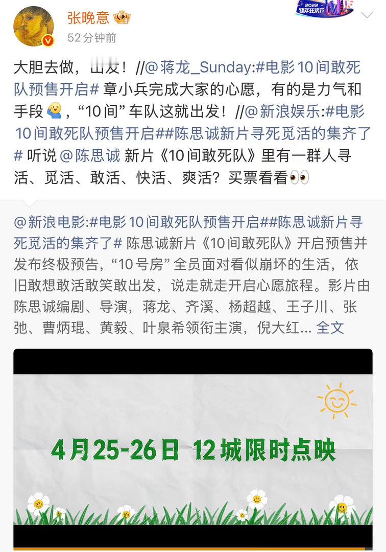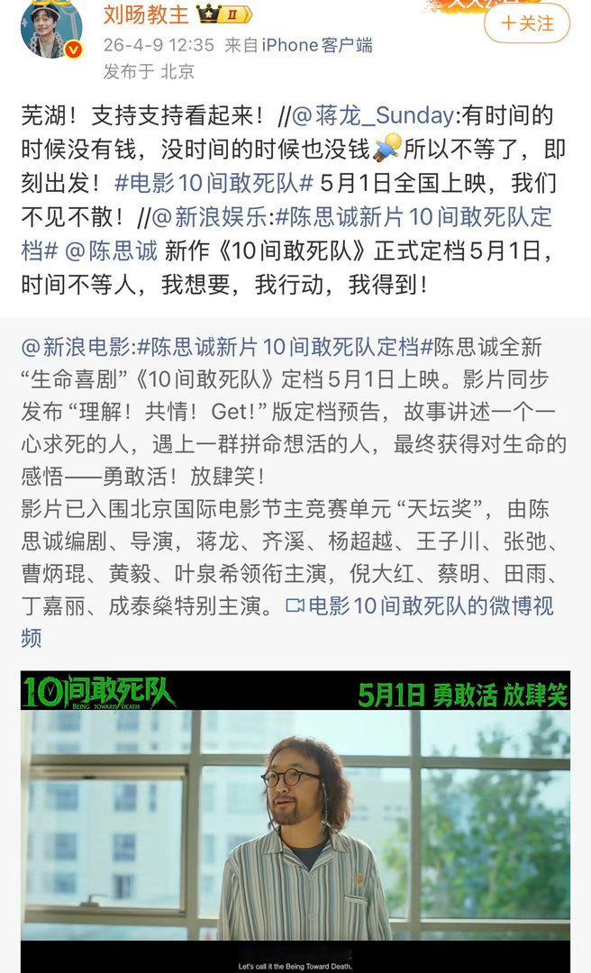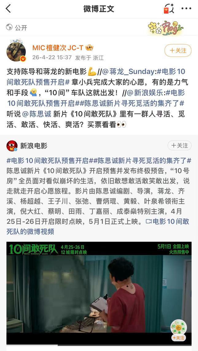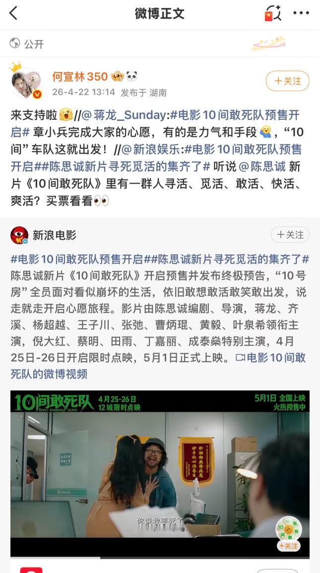 张凌赫檀健次黄景瑜为陈思诚电影打call众星为陈思诚新电影打call半个娱乐圈都在安利的《10间敢死队》来了,众星齐打call,剧情设定新颖有张力,欢乐与治愈并存,假期必看