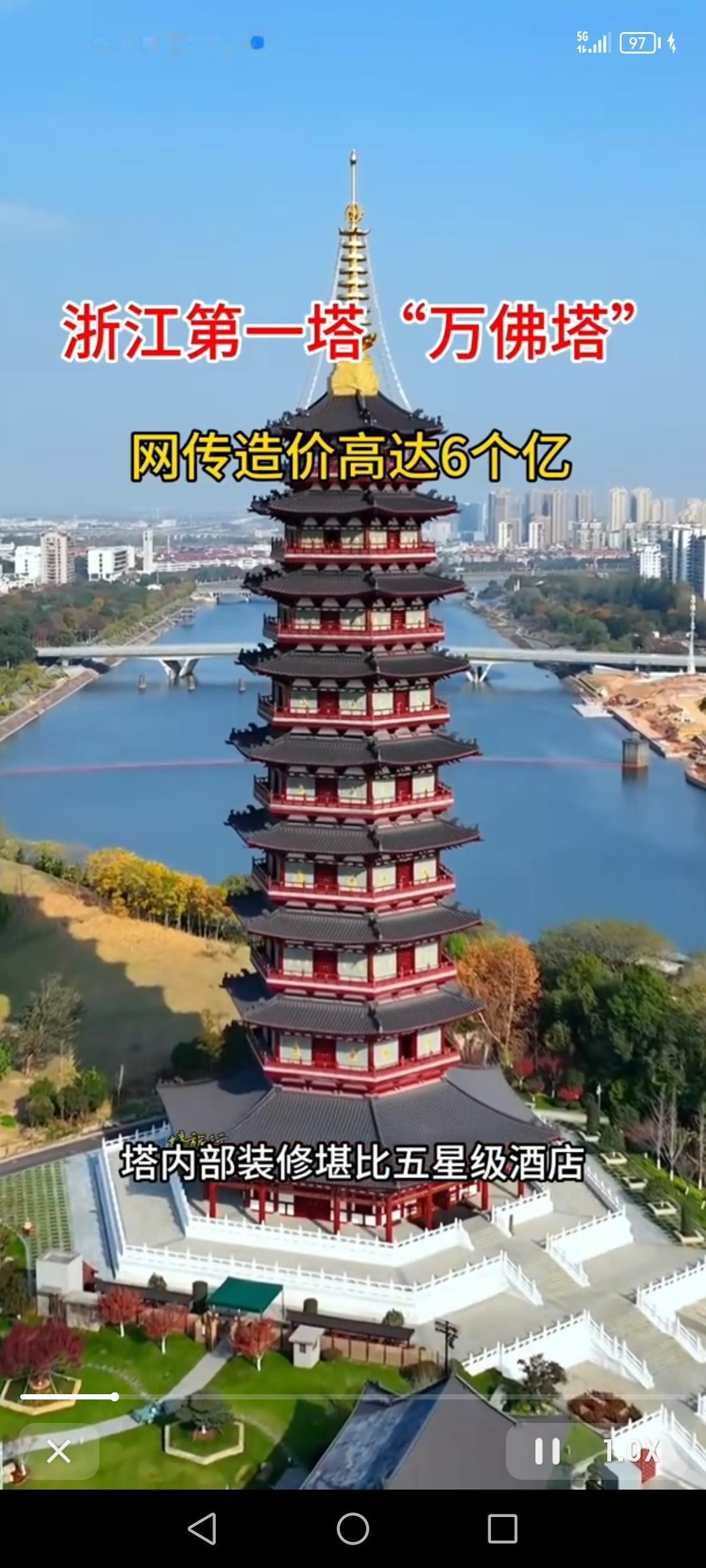 到浙江金华才知道,浙江第一塔竟是万佛塔,而非雷峰塔、六和塔。它始建于北宋,初名密印寺塔,因砖上雕有万尊如来佛像得名。历史上它屡毁屡建,2014 年重建,2019 年开放,还是收费景点。 新塔高 99.99 米,外九层内八层,是钢混结构。采用藻井等宋代元素,融合本地铜雕、木雕工艺,内部装修堪比五星级酒店,尽显奢华。站在塔上,凭栏远眺,双溪似带、群山如屏的美景尽收眼底,不愧是金华的“魂柱”,来金华必须打卡!