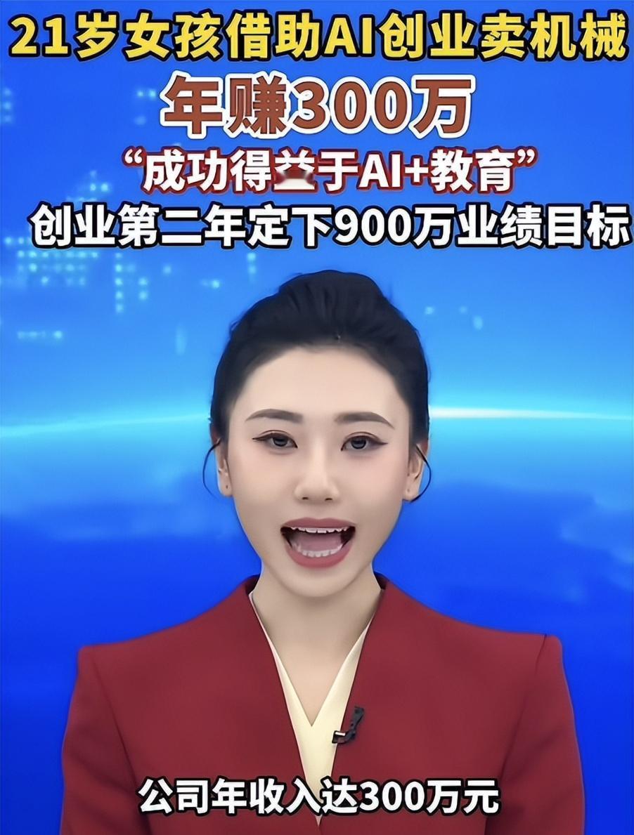 “明年要赚900万!”一个21岁在校女生利用AI卖机械,年赚300万后,再次定下了新的目标。 21岁的王腾是一名在校学生,作为文科生,她跨界卖起了机械,通过借助AI工具高效对接客户,创业第一年公司年收入就超过了300万。 在王腾眼里,成功全靠AI加教育的助力,AI像给她搭了梯子,帮她迈过专业门槛。如今她再定目标,要赚900万,底气十足。 21岁文科女生卖机械年入300万还冲900万,AI真能让外行变内行?郑州西亚斯学院的王腾,用实打实的账单堵住了所有质疑。 王腾学文科,机床参数、工程图纸一窍不通,连扳手怎么拿都得搜视频学。身边同学忙着卷考研、投实习,她却扎进了机械这个“硬核赛道”。 2026年3月,王腾报了学校的AI+X精英班,这门课不用懂编程、全校可报,课堂上的AI演示让她开窍:传统行业门槛能靠AI迈过。 她发现机械销售特别“遭罪”,客户信息散、需求杂,销售人员忙晕头也未必能找到精准客户,专业术语还直接劝退不少意向客户。 王腾不傻,不啃枯燥的机械原理,直接把AI当“万能助手”。碰到复杂的机械参数,她就让AI翻译成大白话,方便自己和客户沟通。 她的第一单,是靠AI帮客户梳理机械产品的核心优势,精准对接需求,顺利拿下订单,也赚到了自己的第一桶金。 三个月后,王腾开了工作室,专做机械数字化营销。她没进过车间、没碰过图纸,也没囤货压钱,纯轻资产运作,让AI筛供应商、自己只对接服务。 AI帮她省了大把时间,很多繁琐的基础工作都能靠AI高效完成,让她能集中精力对接客户、做好服务。 2025年底,她账上实打实有300万,身边人都惊了。有人说她运气好、有靠山,王腾不辩解,打开AI后台,每笔订单来龙去脉一目了然。 她的成功不是碰运气,而是踩准了AI赋能传统行业的风口。和盲目跟风者不同,她用AI拆了专业的墙,解决信息差,就是个“专业翻译官”。 去年爆火的AI算命被查、AI写论文有抄袭争议,唯独王腾的模式,实实在在帮行业解决了难题,这就是差距。 传统机械销售多是工科出身,懂技术不会卖,好多好产品被埋没。王腾靠文科生的嘴皮子加AI硬实力,补上缺口,堪称行业清流。 她也慢慢拓展业务,从一人创业逐步完善运作模式,靠着AI的助力,把机械销售做得有模有样,忙得比上课还认真。 王腾说,多亏学校的AI+教育模式,没让她变成只会用工具的“机器人”,学会让AI帮忙,才少走了弯路。 有人问她凭啥敢定900万目标,王腾底气十足,她说自己已经做好了规划,会继续深耕AI与机械销售的结合,稳步提升业绩。 在她看来,AI时代没有专业壁垒,只有会不会用工具的差距,只要肯尝试,每个人都能找到属于自己的机会。 王腾的故事,让不少人重新思考教育与工作。很多家长逼孩子学热门专业,却忽略学习能力培养,王腾证明,AI时代会学习比专业背景更吃香。 和靠颜值、背景走红的网红不同,王腾凭实力出圈,她的故事让我们看到,00后创业,靠脑子和技术也能站稳脚跟。 王腾常说,AI不是魔法,就是好用的助力器,帮她在陌生行业少走弯路、踩准机会。 在王腾看来,创业就像马拉松,一时的成绩不算啥,能一直进步、稳步前行,才是真本事。 同龄人精打细算生活费时,王腾已规划公司未来;创业者为融资发愁时,她已盈利;传统行业犹豫用AI时,她早已赚得盆满钵满。 王腾的故事很简单:AI时代已来,这是所有人的机会,不管文科生、理科生,学生、上班族,肯学肯试,就能找到自己的舞台。 最后想问一句,如果你能用AI跨界创业,会选哪个行业?欢迎评论区唠唠,毕竟AI时代,谁知道下一个年入300万的是不是你。 信息来源:郑州一00后在校女生借助AI创业卖机械,年入300万:团队已定下900万目标,相信会完成! 2026-03-25 14:33·大象新闻