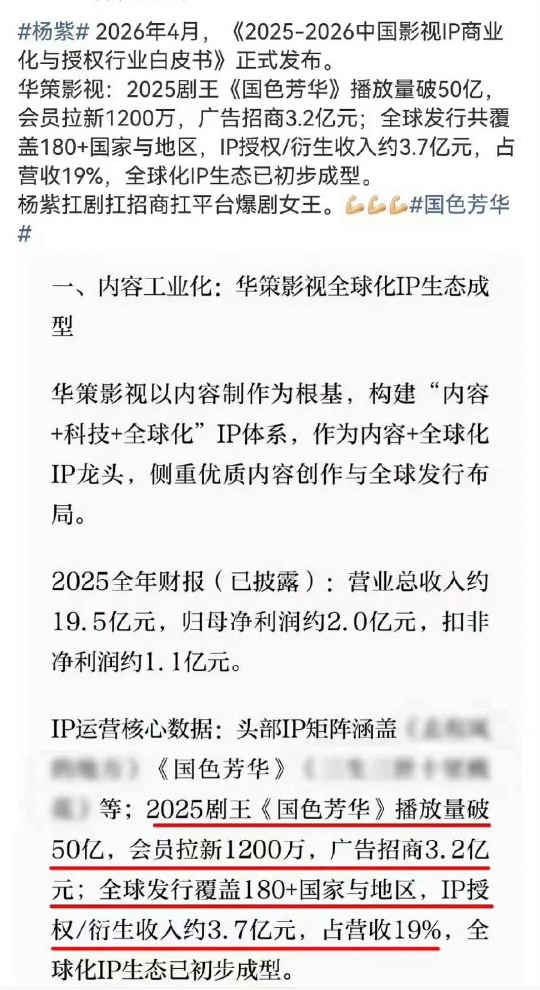杨紫《国色芳华》数据不会骗人,3.7亿衍生收入就是最好的证明。剧情扎实、口碑在线,IP价值被充分盘活,靠实力出圈,国产剧能做成这样,真的挺牛。