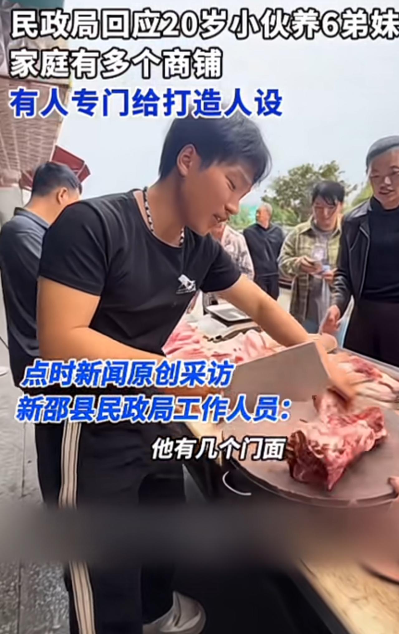 湖南20岁小伙卖猪肉养六个弟弟妹妹,最近挺火的,父母生的最小的一个弟弟还是一个唐氏儿,大家都很同情小伙子的遭遇,却被当地民政局查证说他家有好几个门面,其中两三个还都是全款的,每天的猪都要卖三头。 原来我们都是被人骗了,还真的以为20岁的小伙子不上学,需要挣钱养一家人呢,在他口中父母别的不会只会生孩子,现在别心疼人家了,还是心疼心疼自己吧。 怪不得记者采访的时候,人家爸爸会说生这么多孩子没有压力,人家是真的没有压力啊,这家人在当地的生活,已经算富裕的了,并不是小伙子自己口中说的那么凄惨,因为有人帮助他打造人设来卖货。 这小伙子真是太不地道了。