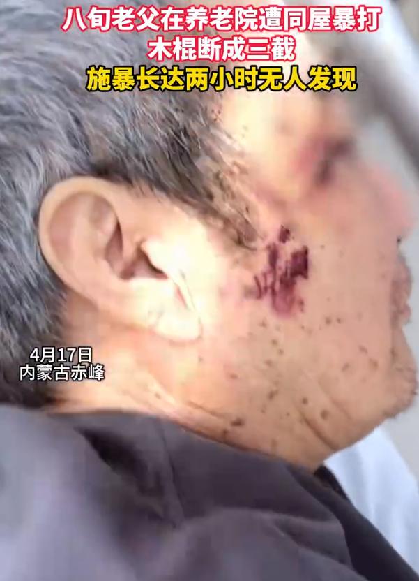 【8旬老人养老院遭殴打木棍断成3节】4月17日,内蒙古赤峰,网友称自己父亲住在养老院期间遭同屋老人殴打致住院。施暴老人先用木棍殴打,木棍被打断三节,又拿起钢制拐杖继续施暴,老人躺在地上只要一动就会被打,事发两小时后才被发现并送医治疗。涉事的颐和康养生园工作人员:这个事正办着呢。(河南法治报)
