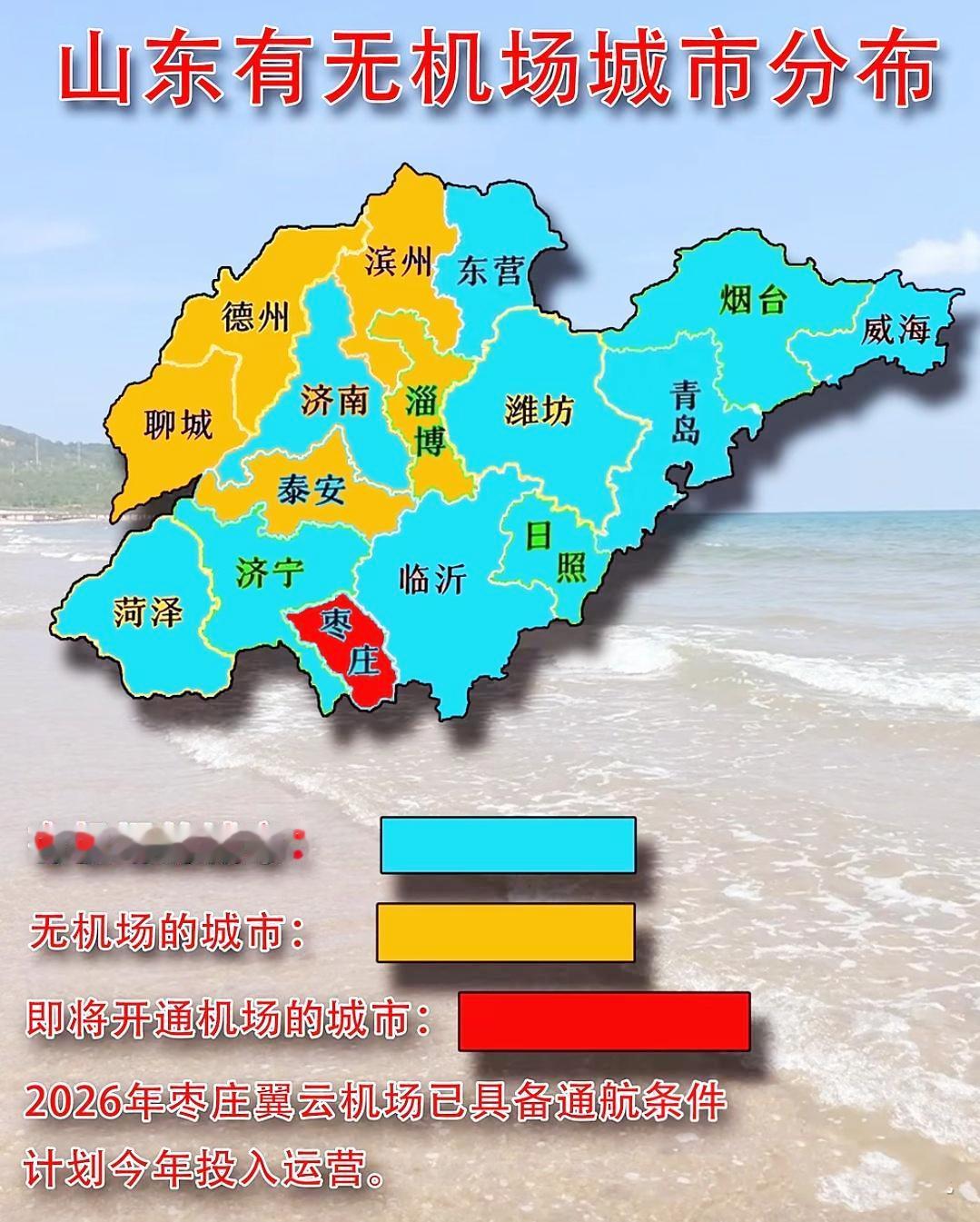 环省会无机场城市分布图。 目前山东省内已建成机场的城市包括济南、青岛、烟台、威海、东营、潍坊、济宁、临沂、日照、菏泽十个,尚无机场的城市有淄博、泰安、德州、滨州、聊城五市,枣庄翼云机场2026年即将通航。 其中青岛胶东国际机场是山东规模最大、等级最高 的机场,航站楼面积47.8 万㎡,机位184 个,设计年旅客3500 万人次。 济南遥墙国际机场二期(2026 年底建成)投用后将反超成为山东最大,航站楼总面积近 80 万㎡,机位211 个,设计年旅客5500 万人次。