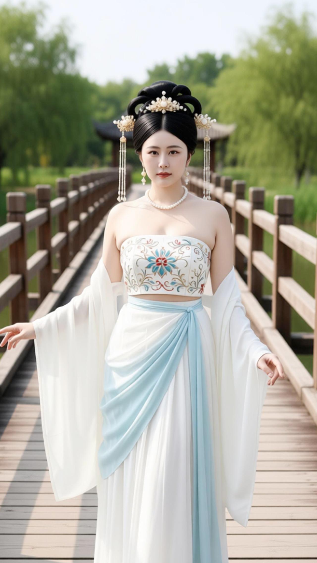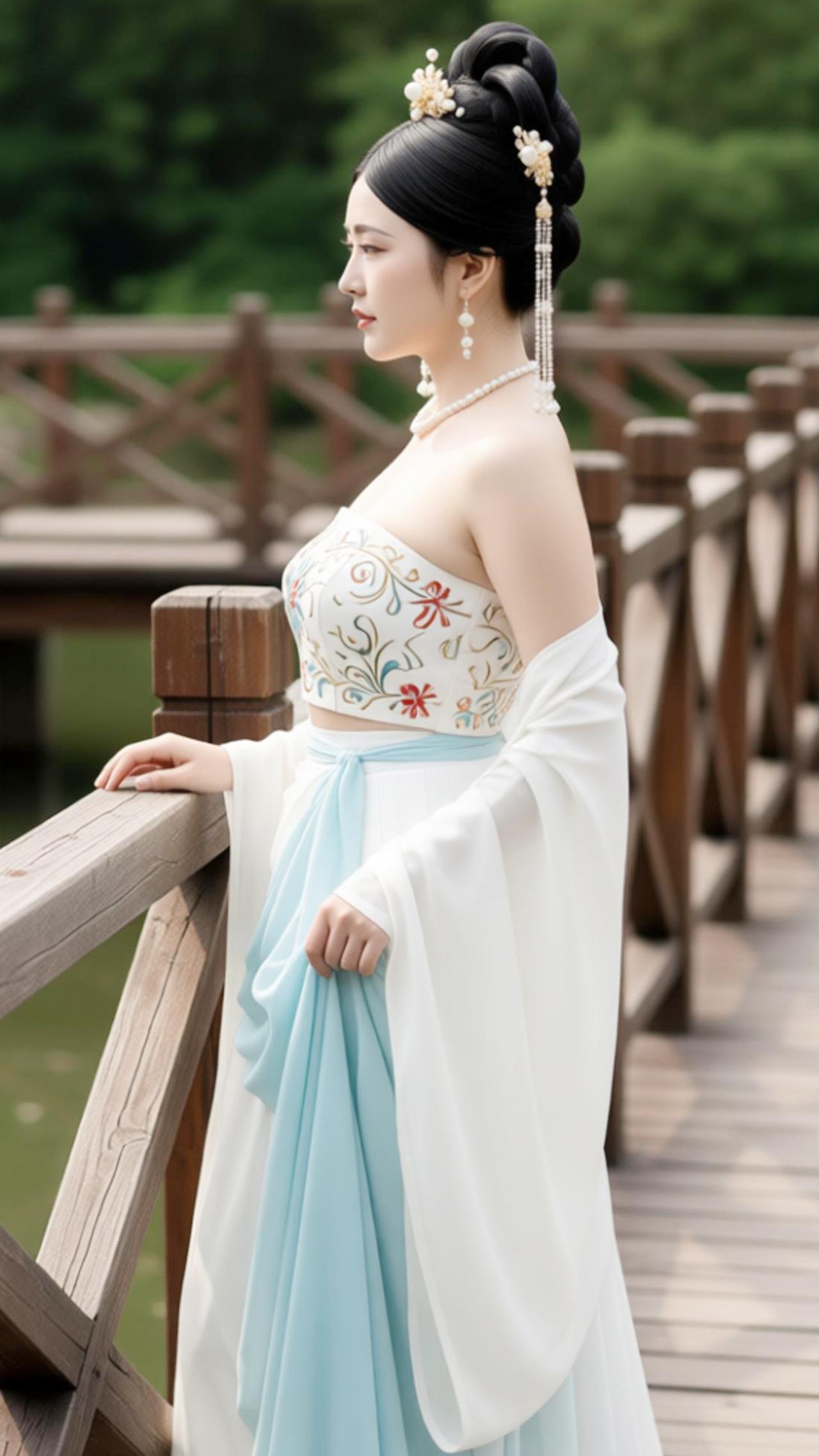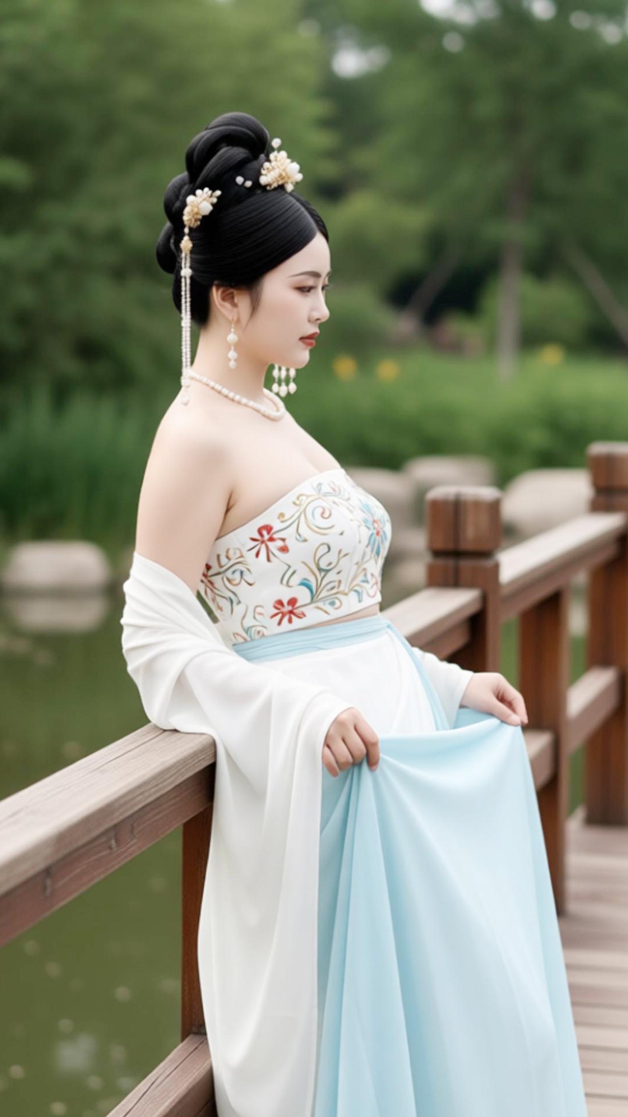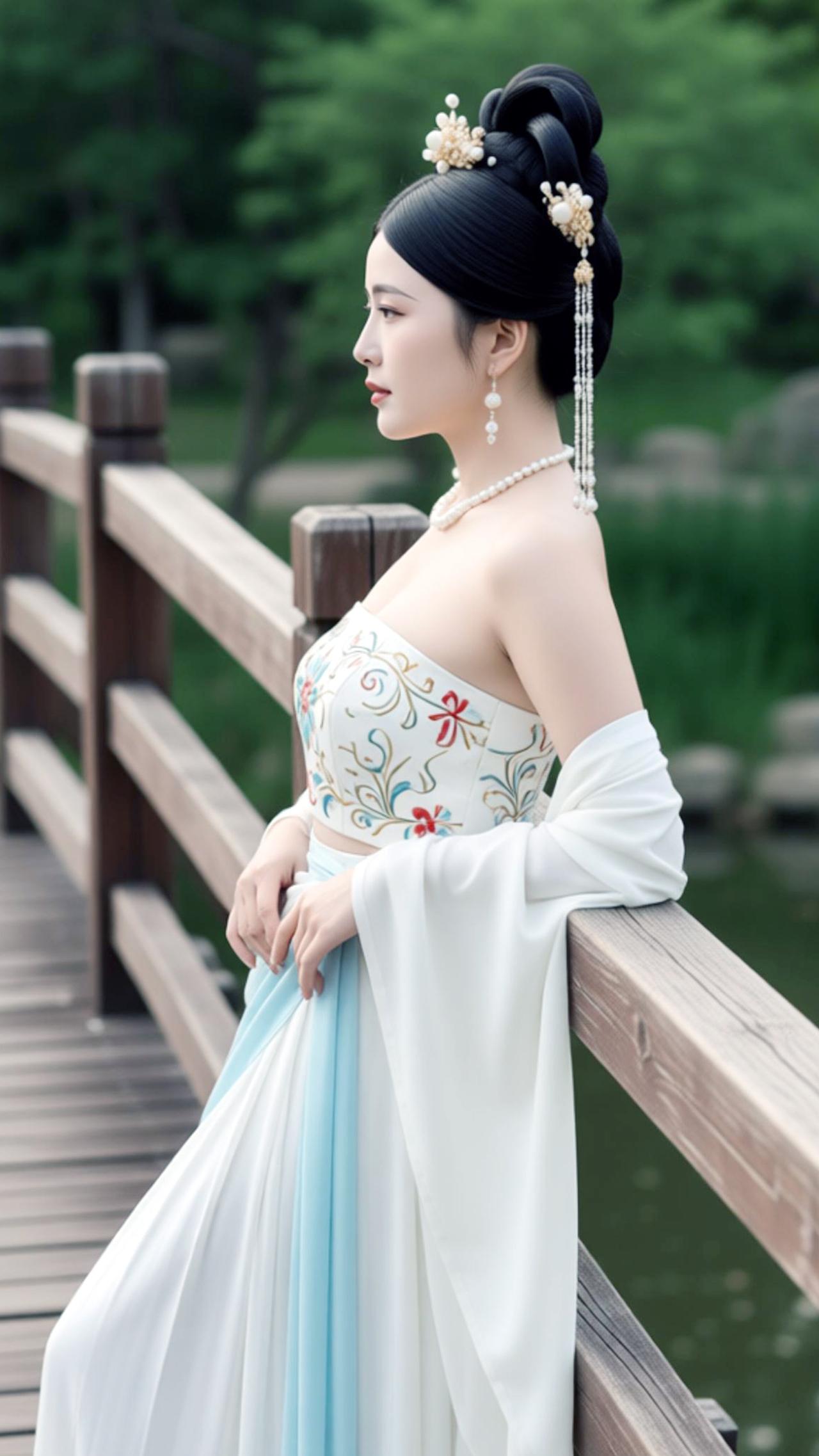 小姐姐的古装美翻了,的青石板路漫向林深处,木栏临水,风携着荷香漫过肩头。苏念念立在桥上,螺髻簪着素雅珠钗,斜襟抹胸绣着缠枝纹样,浅蓝裙摆似揉碎的晴空,垂落的白纱如云絮轻绕。眉眼低垂,是盛唐仕女的温婉,衣袂沾着草木的清气,时光仿佛在此停驻,将古雅的诗意,揉进了这一方水色山光里。@模特的神仙身材@好身材气质美女@好身材性感女神@古装美女@美女高清写真@古装女神
