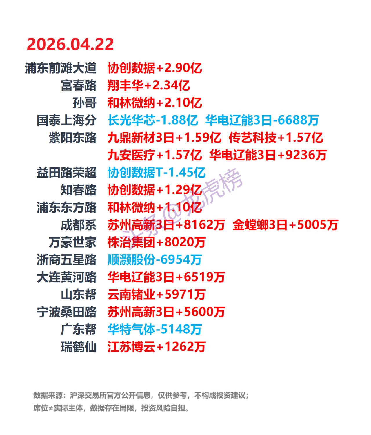 4月22日A股龙虎榜:游资席位公开数据整理