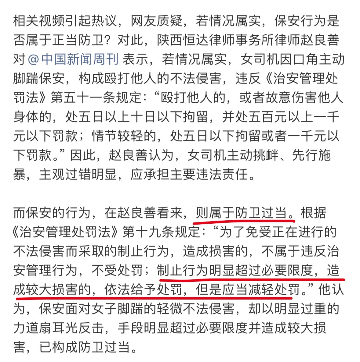 女子脚踹保安被扇事件警方已立案请律师给大家示范一下,什么样才不是防卫过当呗。