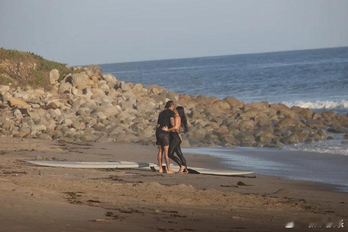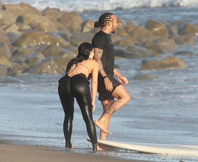 据外媒,金·卡戴珊、刘易斯·汉密尔顿日前在加州马里布海滩度假,两人被拍到在海里拥抱、亲吻,十分甜蜜。