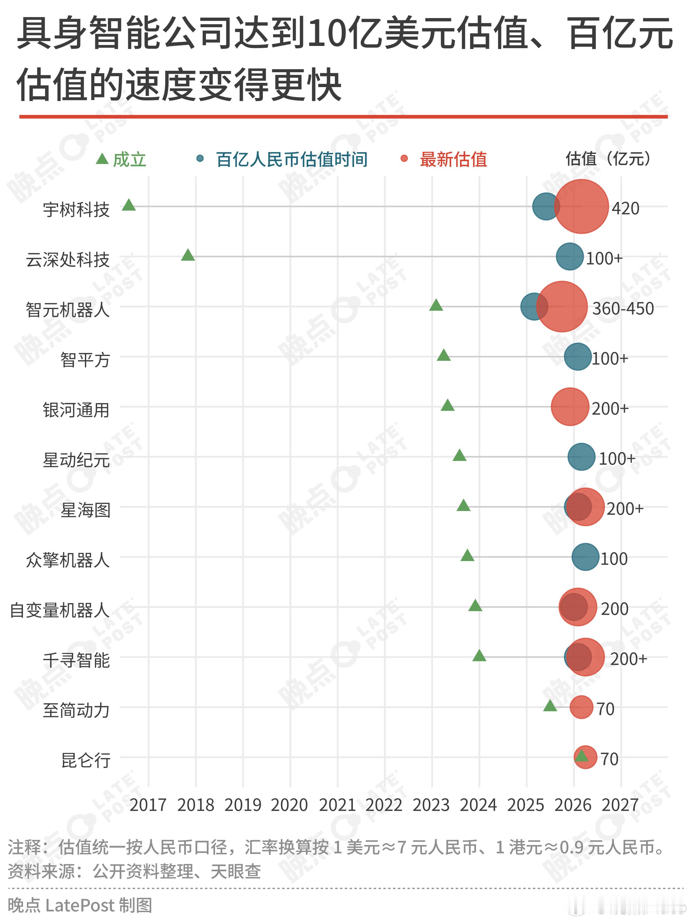 宇树花了 9 年才到百亿人民币估值;2023 年创业的智元、银河通用等也花了 2 年摸到这个估值门槛。但理想前智驾技术负责人贾鹏去年 7 月创立的至简动力,只花了半年估值就达到 10 亿美元。阿里云前中国区总裁和理想前智驾负责人郎咸朋创立的昆仑行,又极可能打破老同事的纪录。