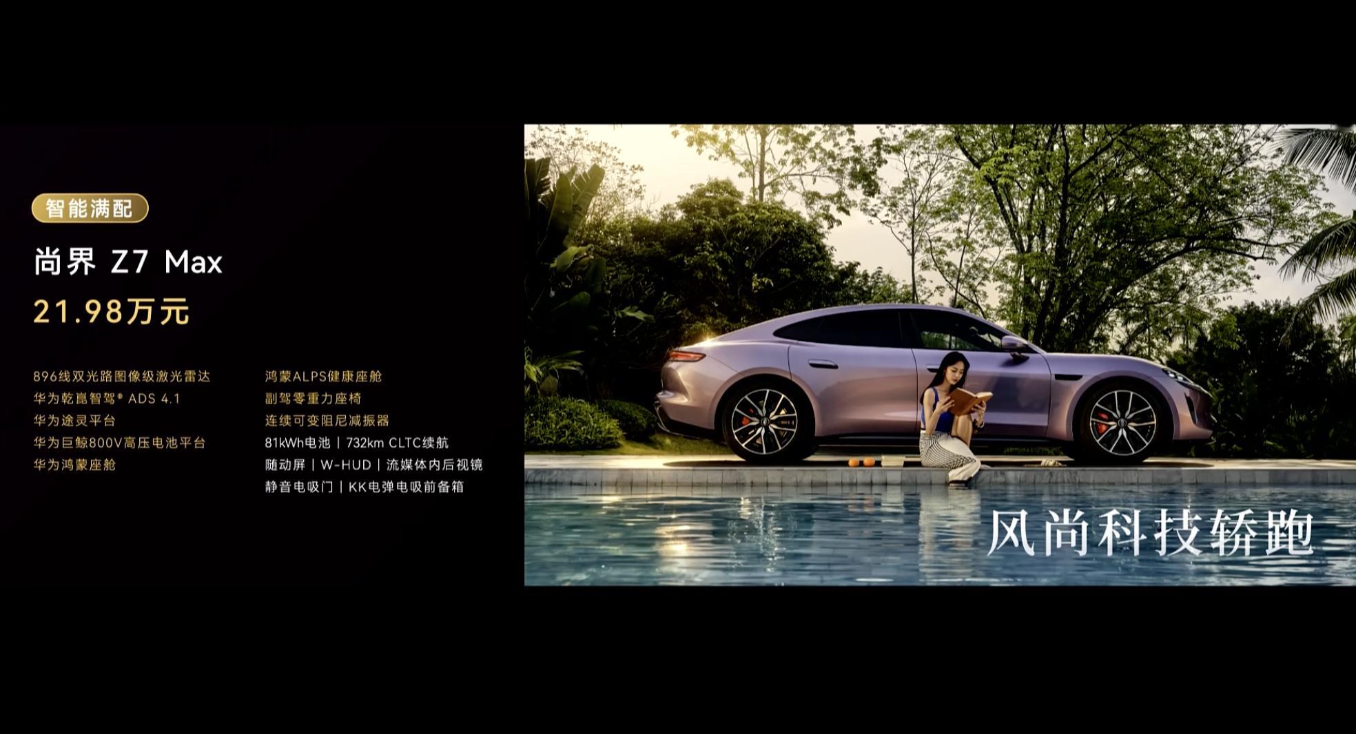 余总说,尚界Z7不做偏科轿跑,各方面都是给到满配。辅助驾驶、舒享、智能、续航、性能,都是超越所想,更胜所期。预计5月下旬正式开启交付,预定用户72小时内锁单享优先交付。这个价格,符合各位预期么?这会是不是已经开始锁单了。余承东称尚界Z7不做偏科轿跑尚界Z7上市价格21.98万元起