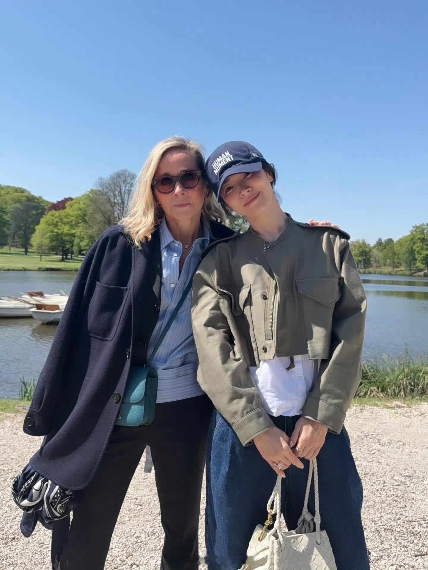 宋慧乔现身法国巴黎旅游,她站在河水边,朋友的一只手搭在她的肩上,姿态放松,开心的