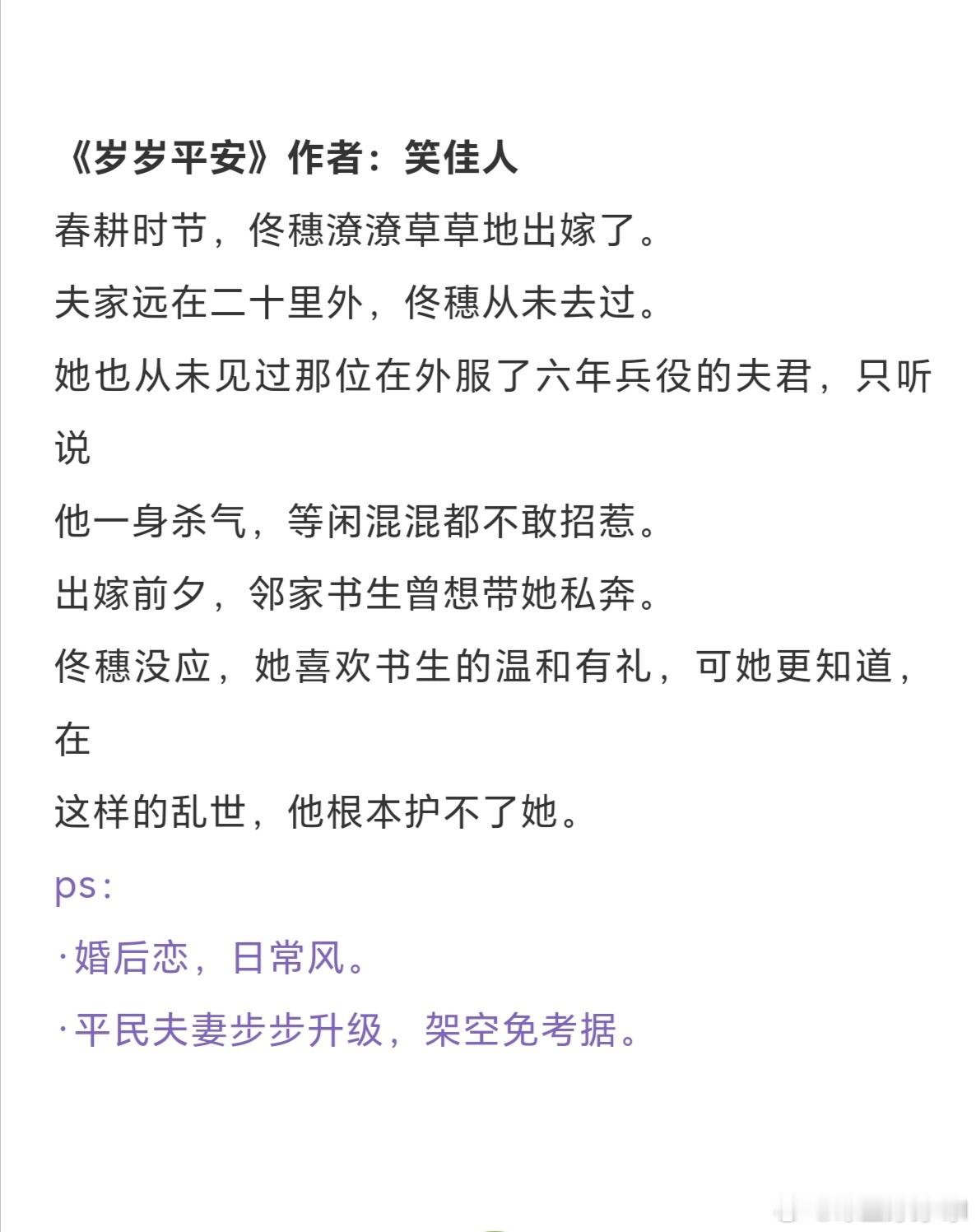 《岁岁平安》作者:笑佳人《洛九针》作者:希行《乘鸾》作者:云芨《谢家的短命鬼长命百岁了》作者:怡然《濯缨录》作者:薄月栖烟《再生欢》作者:八月薇妮《重生之富贵咸鱼》作者:唐时锦《故人之妻》作者:第一只喵《首辅娇娘》作者:偏方方《穿成亡国太子妃》作者:团子来袭言情小说推荐古言