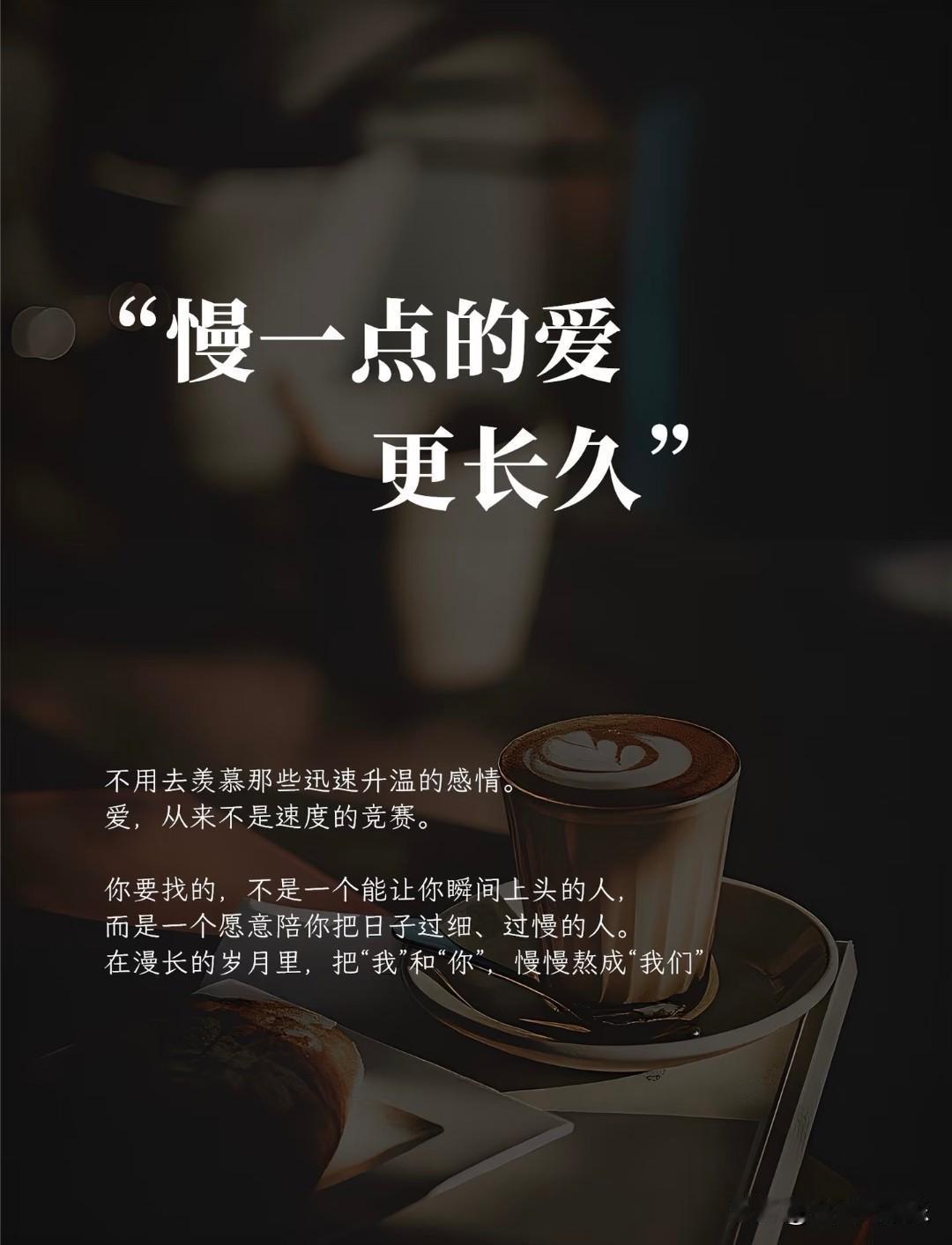 慢一点的爱,更长久。 不用去羡慕那些迅速升温的感情。 爱,从来不是速度的竞赛。 你要找的,不是一个能让你瞬间上头的人, 而是一个愿意陪你把日子过细、过慢的人。 那些闪恋闪分的感情,像烟花一样绚烂, 却也像烟花一样短暂。 而真正长久的爱,是细水长流的温柔, 是慢慢了解,慢慢磨合,慢慢依赖, 是在漫长的岁月里,把“我”和“你”,慢慢熬成“我们”。 他会陪你吃很多顿饭,走很多段路, 看很多次日落,说很多句废话。 他不急于给你承诺,却会用行动告诉你, 他愿意陪你,慢慢走下去。 愿我们都能遇到这样一个人, 不慌不忙,不紧不慢, 陪你把日子过细,把爱拉长, 在慢下来的时光里,温柔相爱,长久相伴。
