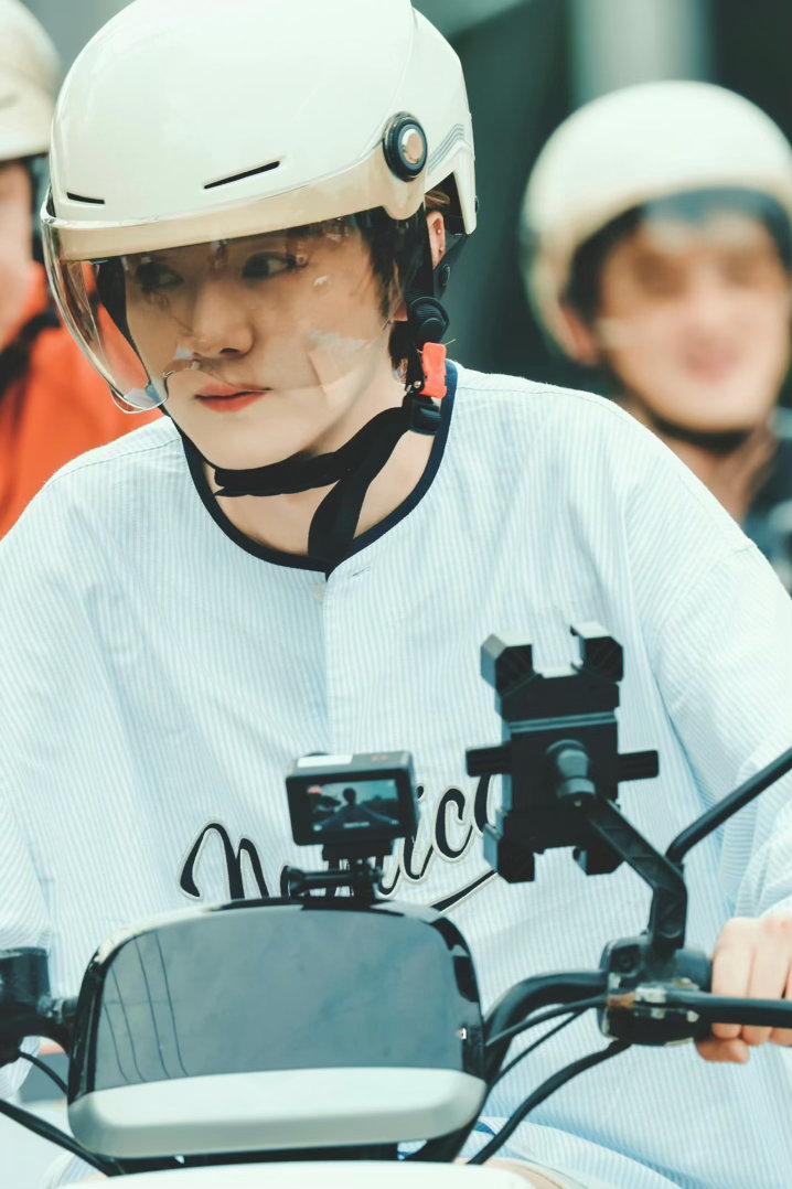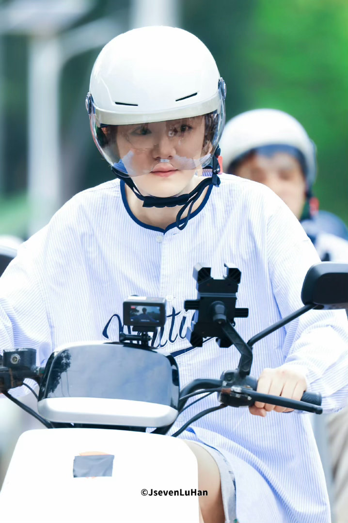 鹿晗骑电动车鞠躬鹿晗膝盖鼓包这身衣服骑电动车好像偶像剧啊哈哈哈哈哈
