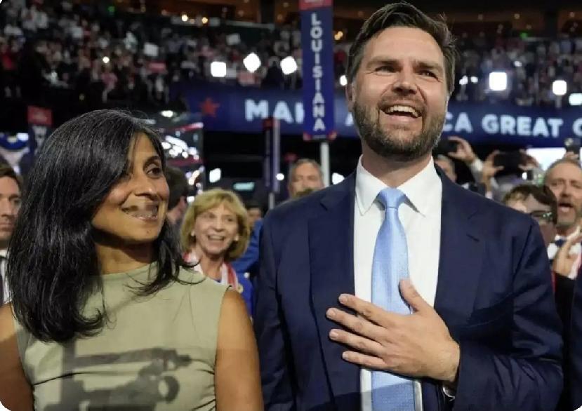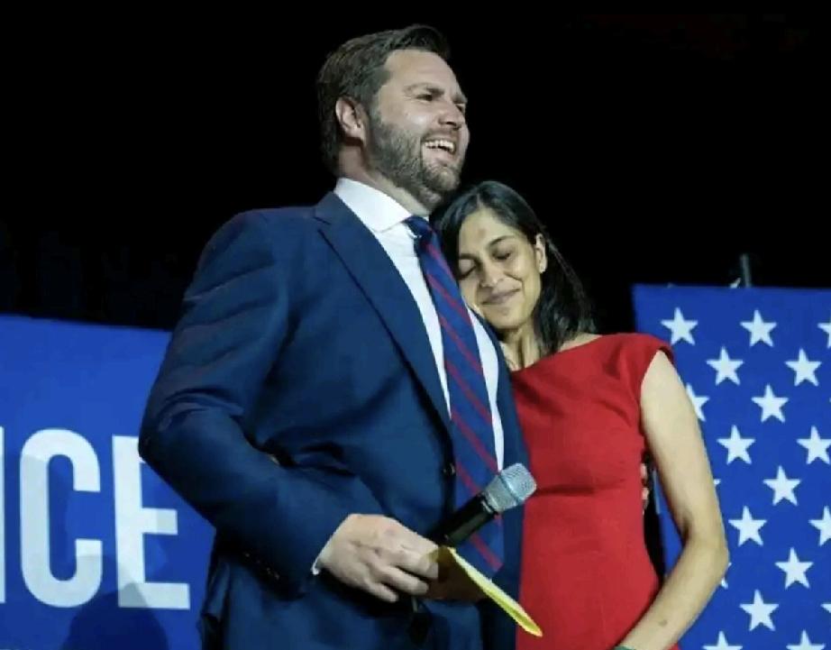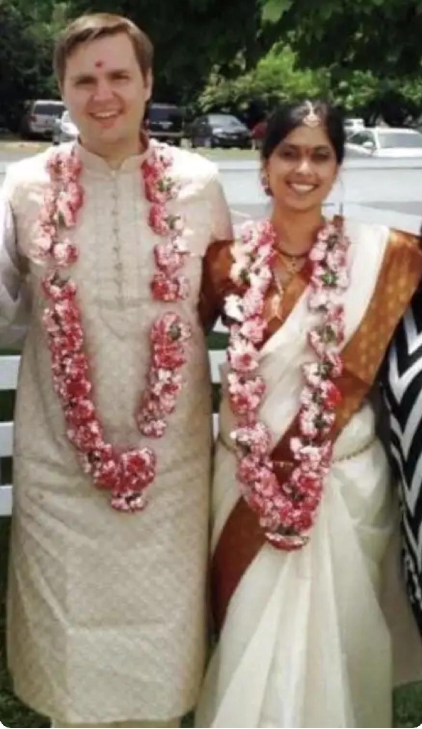 年轻的万斯长的白白净净的,脸蛋肉肉的看起来有点小可爱; 他的妻子乌莎因为肤色深的原因吧,比他有点显老气。 戴着粉色花环的万斯和乌莎,像是处在浪漫的恋爱季节里;他们的眉心都点了一颗红痣,穿着打扮很印度。 留着络腮胡子的万斯,虽然还是有点婴儿肥,但是肉眼可见成了成熟大叔;依偎在他肩膀上的乌莎,甜甜的笑着,像个幸福的小女孩。 成功的男人,在女人眼里是被崇拜的偶像。