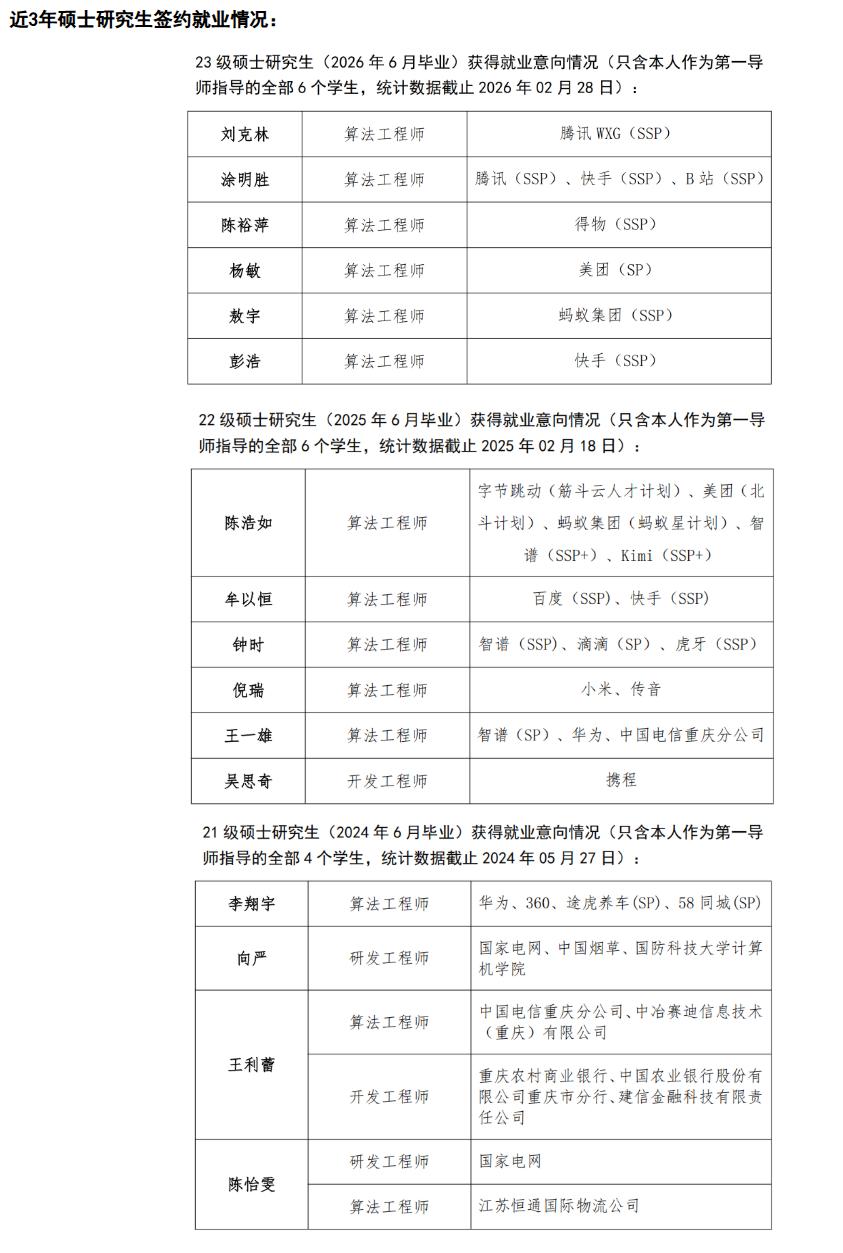 重庆邮电大学王进教授最近火了,所指导的2026届硕士生不仅全部就业,而且平均年薪62万。 王进教授是重庆邮电大学数据工程与可视计算重点实验室主任,硕士生导师,研究方向为行业大数据分析、大规模数据挖掘与机器学习。 最近,王进教授在某书上爆火,主要是因为其指导的2026届硕士毕业生,不仅100%就业,而且全部进了算法工程师岗,平均年薪在62万。 再查看一直王进教授的主页信息,亚麻呆住,近三年他所指导的硕士毕业,全部是100%就业,而且都是重点岗位;他累计指导学生获得国家级科技竞赛奖励已有100多项,奖金高达200多万元,并连续多年被评为“优秀指导教师”。 在他这里,他就是最好的平台,胜过了985、211。