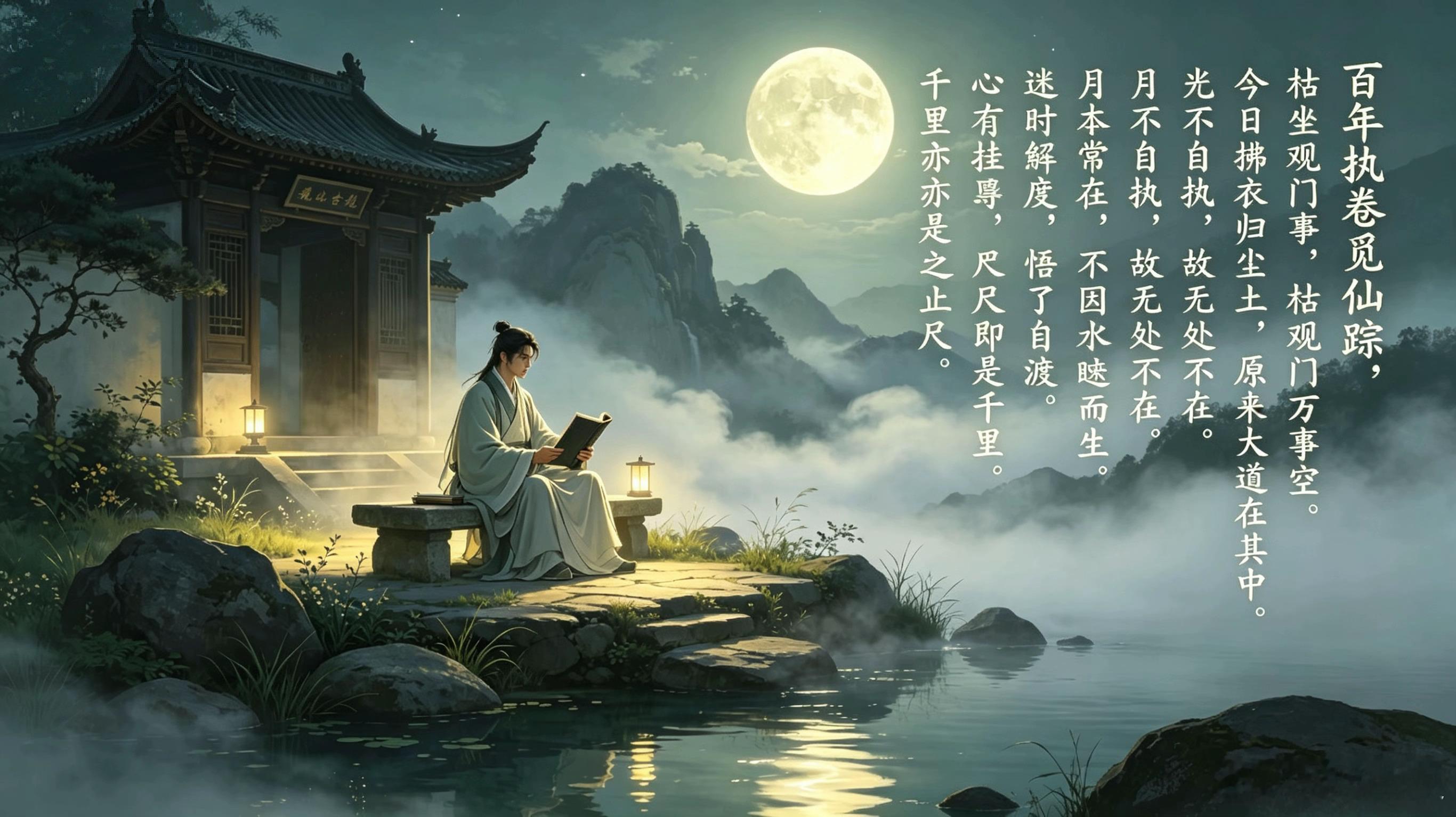且看这月光,月光可曾问过是照在石头上还是照在草木上?光不自执,故无处不在。月本常在,不因云遮而灭,不因水映而生,执着得失,便是心障。迷时失度,悟了自渡。心有挂碍,咫尺便是千里。咫尺千里,千里亦是咫尺。……