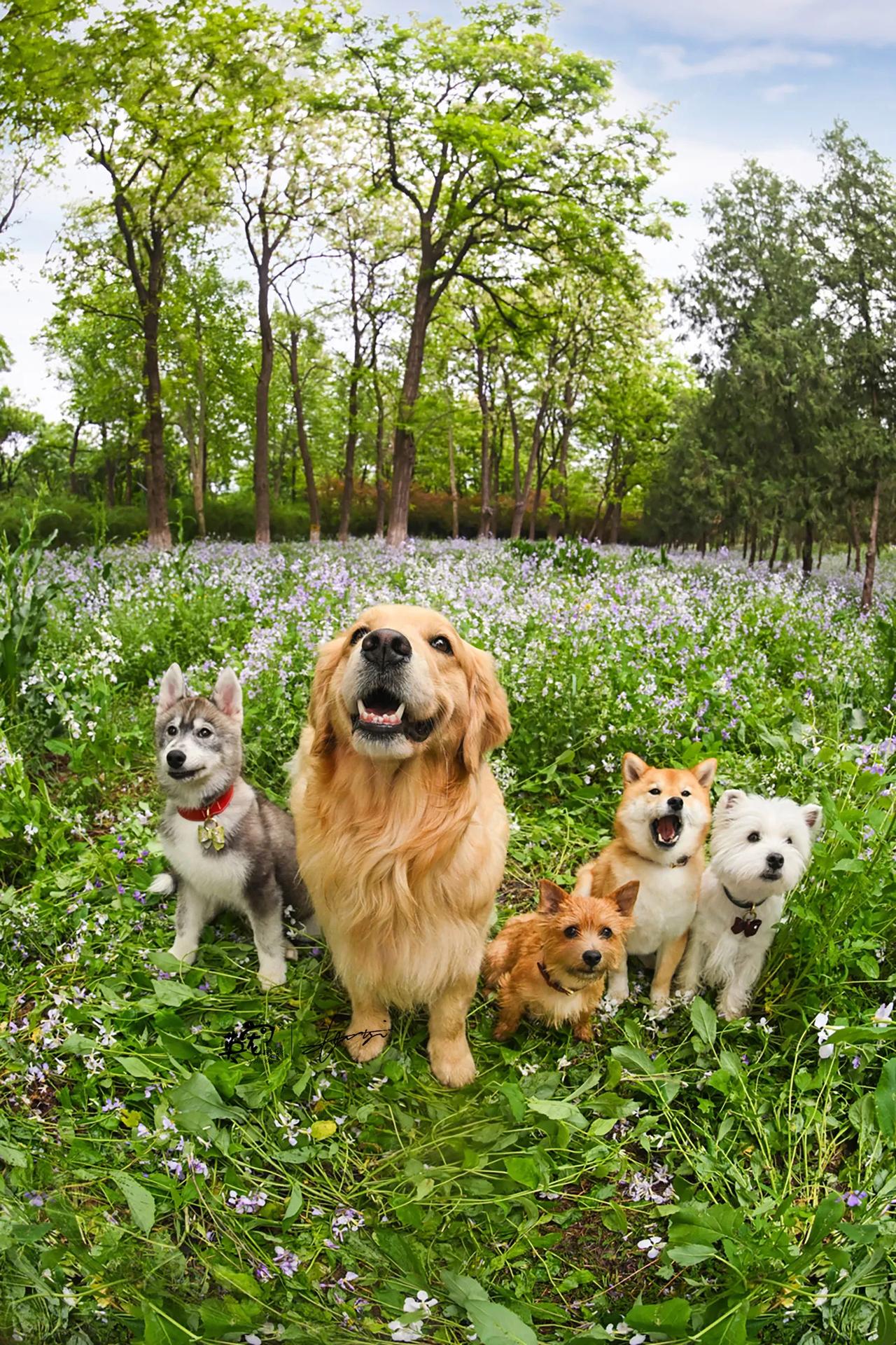 当你拥有了两只哈士奇 生活就变得特别欢乐 花季最后10天,还没带孩子拍吗?