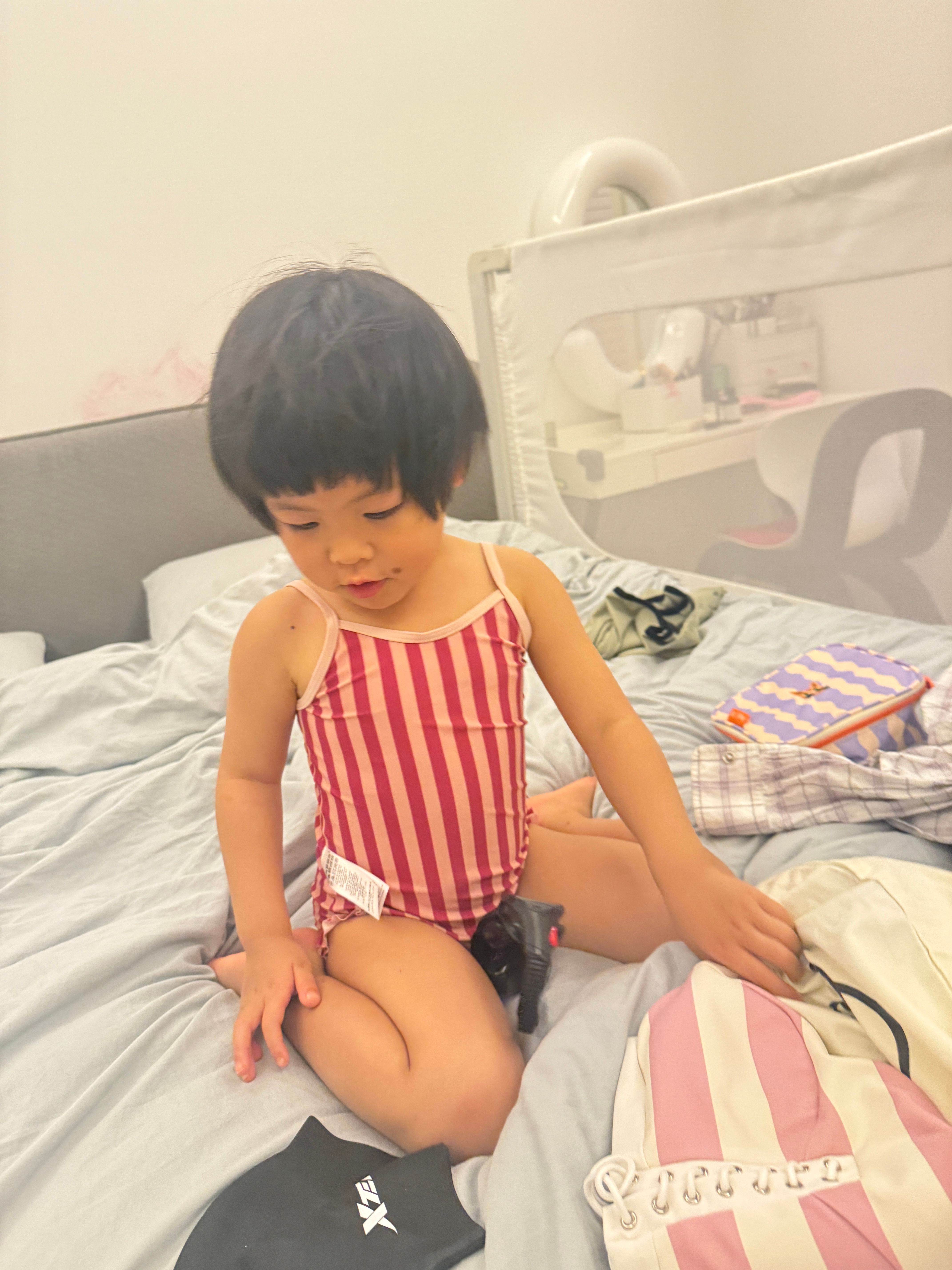 怎么着都不肯洗澡商量了半天,她答应穿着泳衣洗