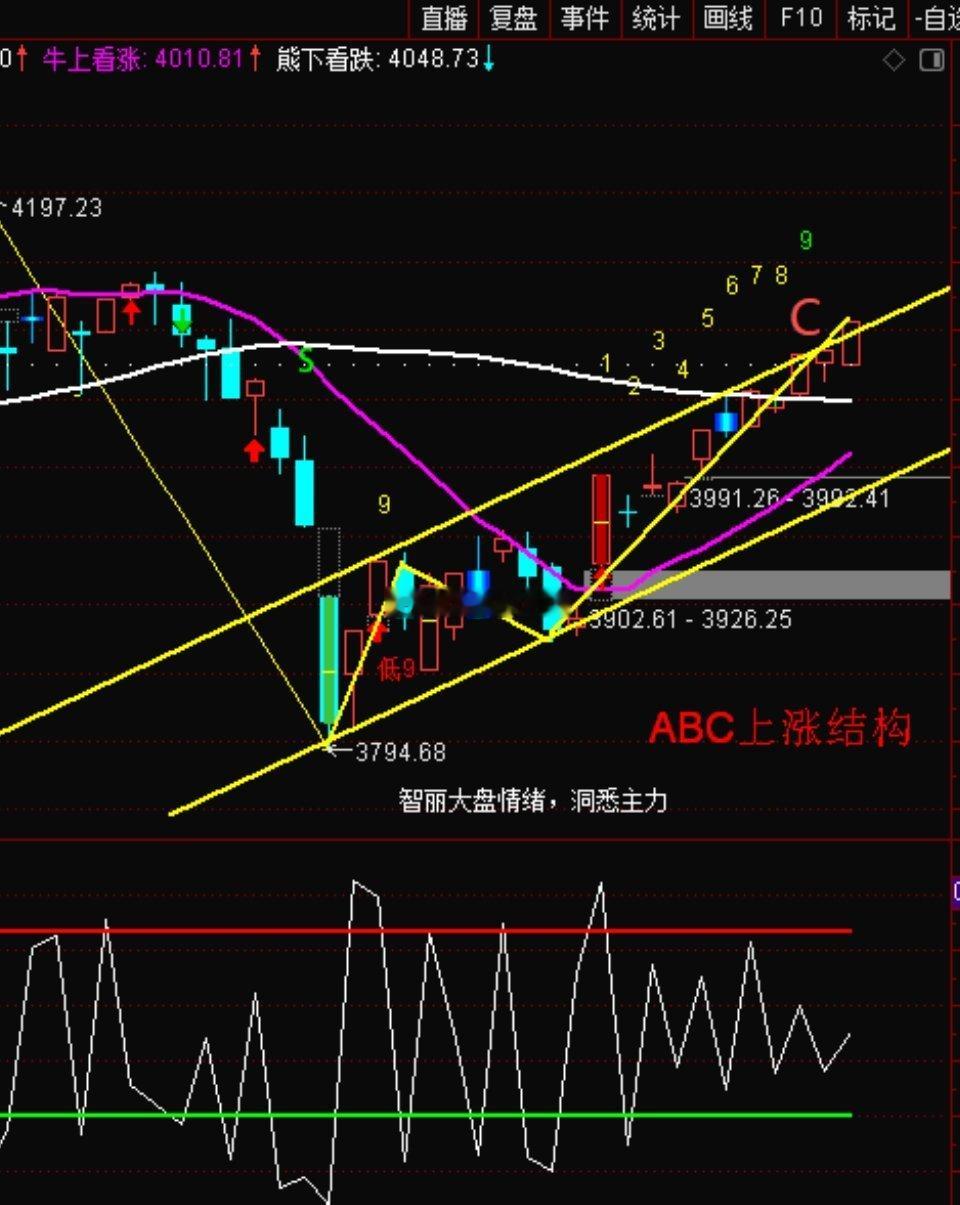 ②、熊线已经向上突破,目前趋势线,明天会在4048附近(超级重要)!