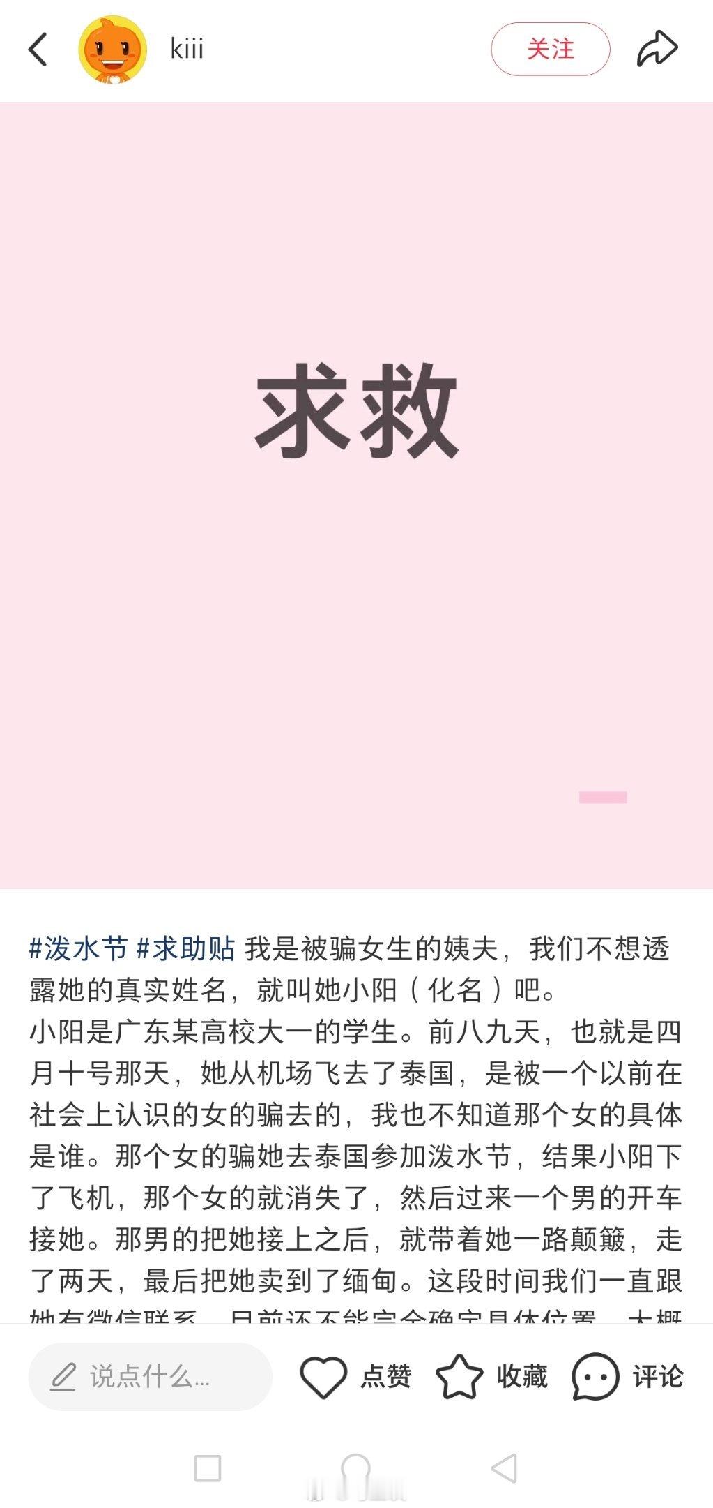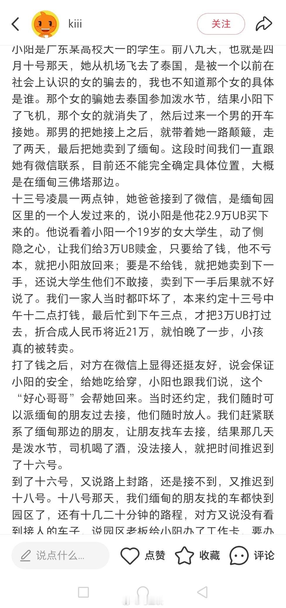 被社会上认识的女性朋友邀请去泰国参加泼水节,广东大一女生被转卖至电园,女子亲姨夫称,父亲按要求转账3万U币(20万人民币),但对方借口多次拖延,至今仍被困,声称如果不打钱,就会把小阳转卖给他人,说不定还可能遭遇轮.奸…小阳父亲表示,这是自己唯一的女儿,若女儿遭遇不测,整个家庭都将难以承受…胆子太大了!太好骗了…