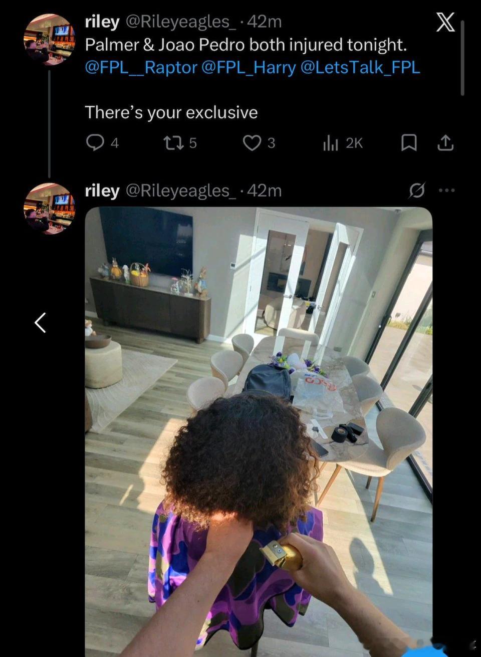 他在X上透露帕尔默和佩德罗受伤了。随后火速删帖销号。两人最终确实无缘大名单。 ️布莱顿3比0切尔西